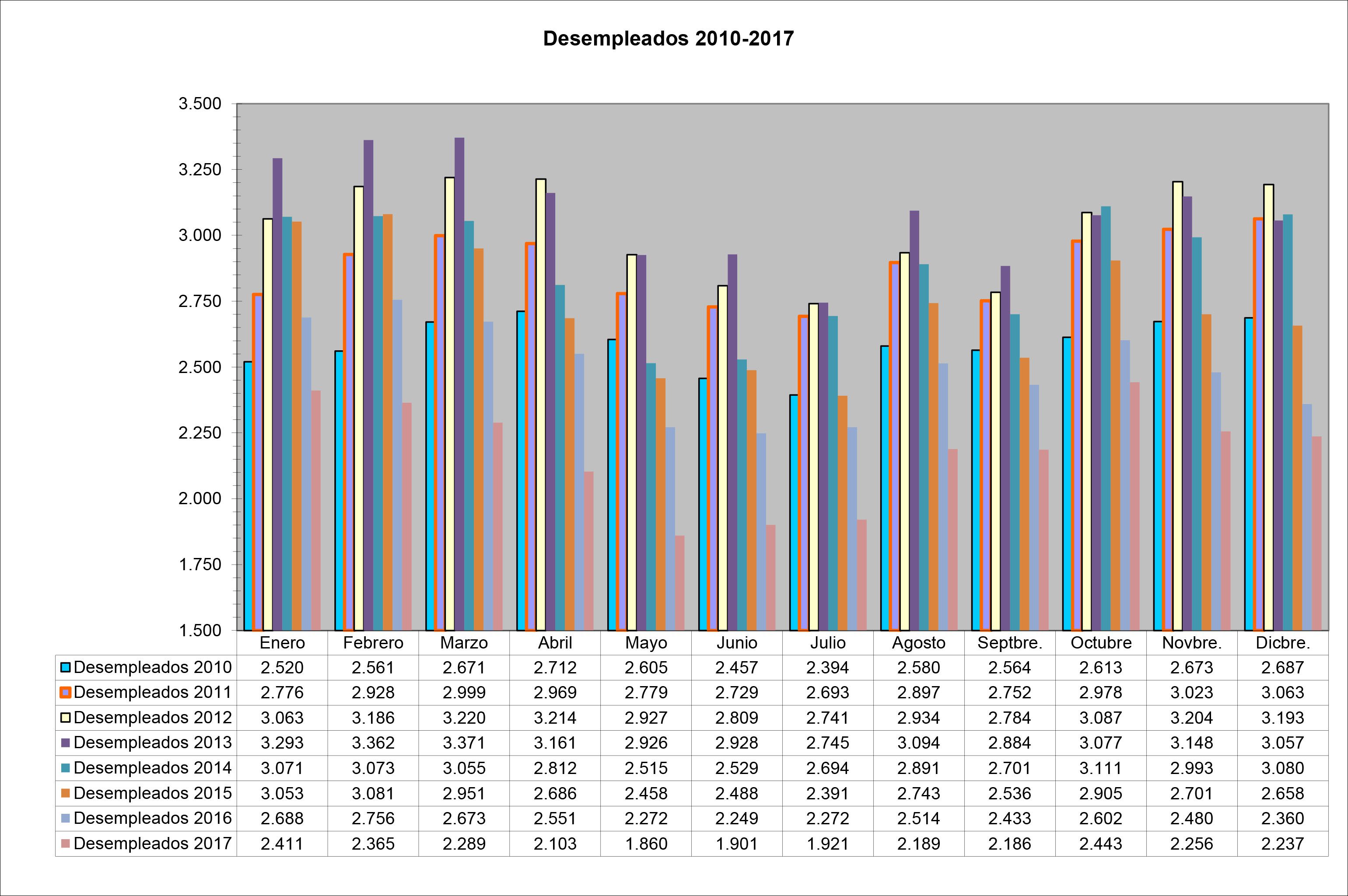 El año 2017 se ha cerrado con 123 personas menos en situación de búsqueda de trabajo que en el año anterior. Las cifras de diciembre de 2016 eran de 2.360 desempleados, mientras que diciembre de 2017 termina con 2.237 parados. El desempleo también ha descendido en 19 personas en el último mes del año respecto a noviembre. Esta disminución ha sido mucho más acusada en hombres con 21 desempleados menos respecto de las mujeres que han aumentado en 2.