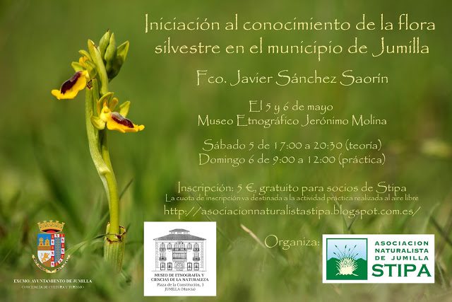 La Asociación Naturalista Stipa ha programado la realización de un curso bajo la denominación de «Iniciación al conocimiento de la flora silvestre en el municipio de Jumilla», que será impartido por Francisco Javier Sánchez Saorín.