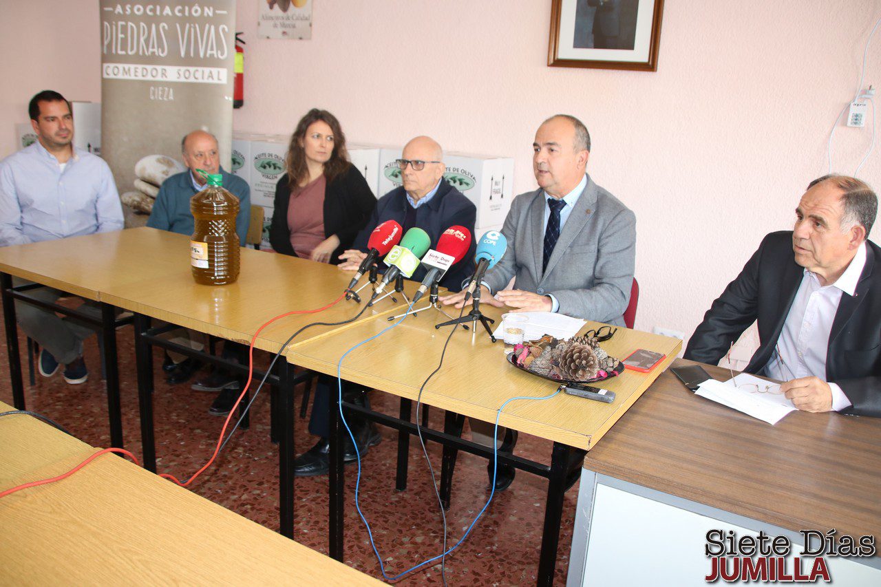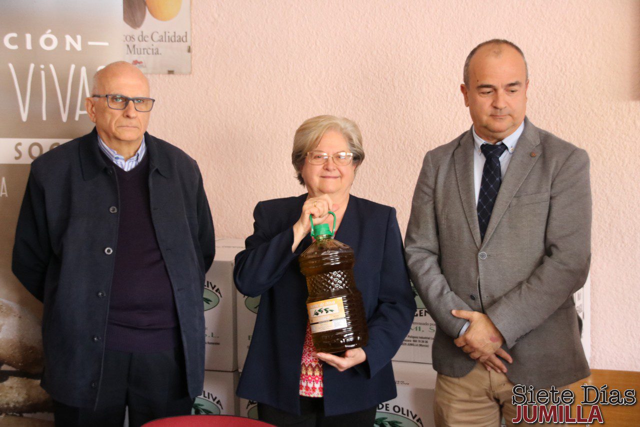 La Consejería de Agua, Agricultura, Ganadería y Pesca, a través del Centro Integrado de Formación y Experiencias Agrarias de Jumilla, hizo entrega de 1.120 litros de aceite virgen a cinco ONGs murcianas cuyos proyectos están basados en la ayuda de las personas más necesitadas y en riesgo de exclusión social y que disponen de entre otras ayudas de comedores sociales, en los que se invertirá el oro líquido del que se han beneficiado; se trata de Cáritas Jumilla, Piedras Vivas de Cieza, RAIS Fundación de Murcia, Programa Oblatas de Murcia y la Fundación de Estudios Médicos de Molina de Segura.