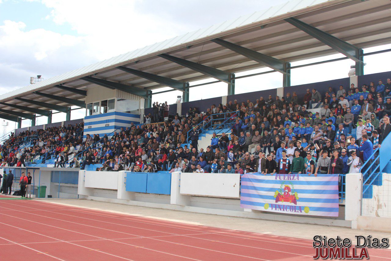 El FC Jumilla comenzó el partido presionando arriba. La grada, -que presentaba una de las mejores entradas de la temporada, gracias al económico precio de las localidades, que por iniciativa del club tan solo costaron un euro-, empujaba para que el equipo se viniera arriba. Tanto, que en los primeros segundos los vinícolas pudieron adelantarse tras un centro de Ceballos que Txomin Barcina no acertó a rematar con potencia.