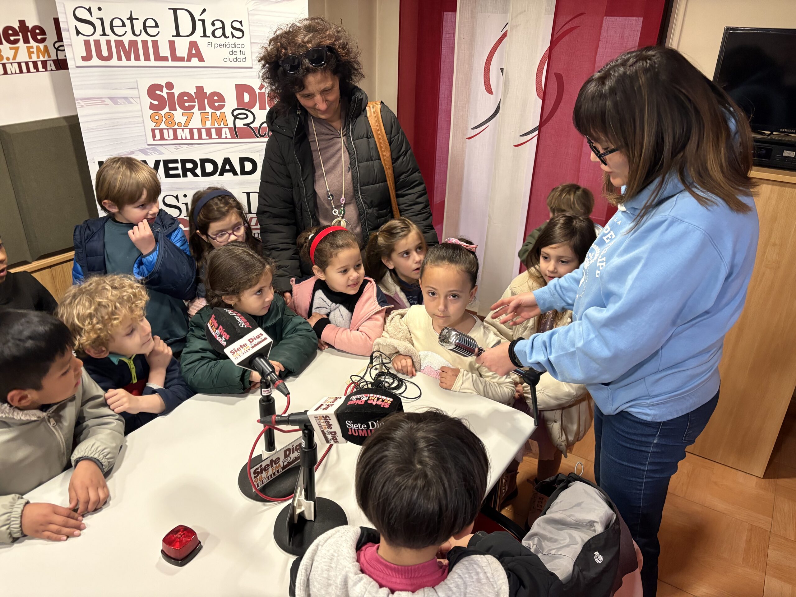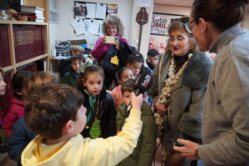 Los pequeños periodistas querían conocer de cerca cómo se elabora el semanario, qué noticias se incluyen y, en definitiva, cuál es el trabajo diario del periódico. Para ello, estuvieron haciendo preguntas a los redactores de Siete Días Jumilla e incluso intervinieron en directo en el magazine matinal de la radio.