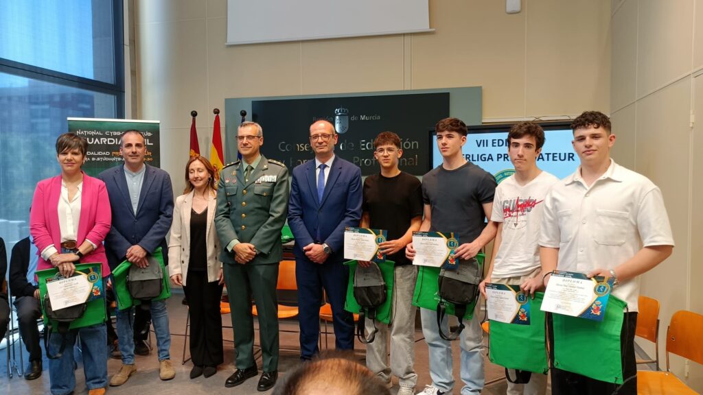 El equipo, formado por Óscar Martínez, Rodrigo Monreal, Pedro Terol y Roberto Tomás, fue recibido en la Consejería de Educación de la Región de Murcia por responsables educativos y mandos de la Guardia Civil, en un acto en el que se les trasladó el apoyo de las instituciones, antes de afrontar la final que se celebra hoy en la Academia de Oficiales y Centro Universitario de la Guardia Civil en Aranjuez (Madrid) y en el que participarán especialistas del Instituto Nacional de Ciberseguridad (INCIBE) y otras entidades de referencia en el ámbito tecnológico.