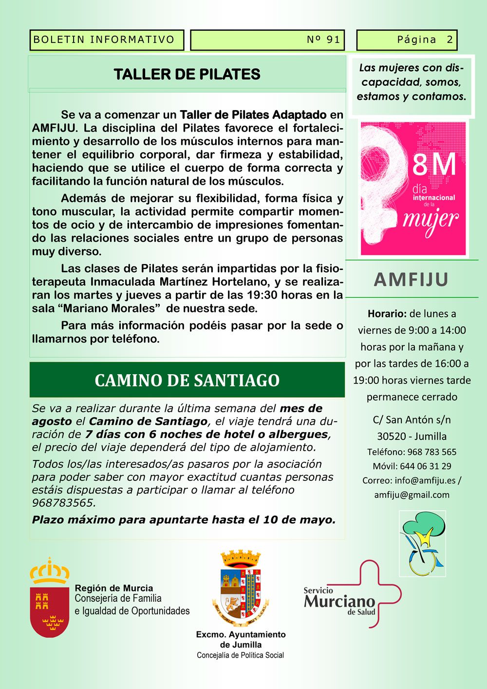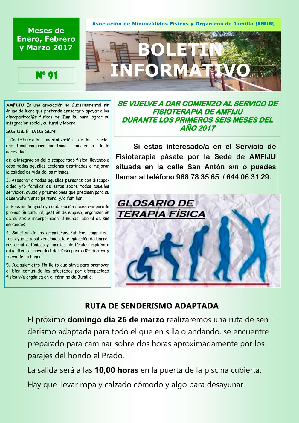 Amfiju ha vuelto a lanzar el último boletín trimestral que editan, en el que informan que desde enero se vuelve a contar con el servicio de fisioterapia que se prolongará hasta el próximo mes de junio.
