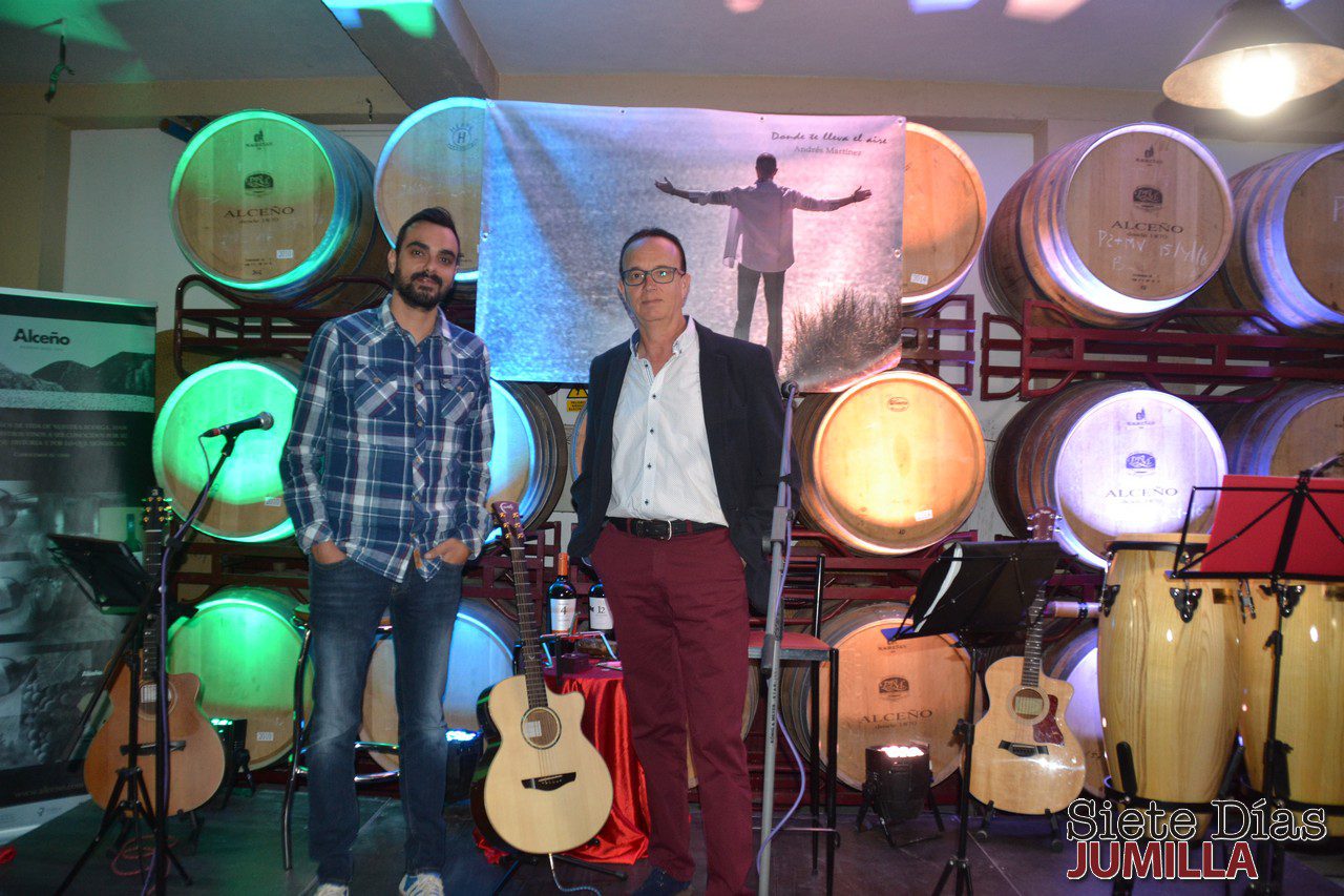 El pasado fin de semana, Bodegas Alceño acogió el concierto acústico de Andrés Martínez con el título ‘Poesía en una botella’, canción que el cantautor ha dedicado a la bodega. Un concierto emotivo y entrañable que sirvió para celebrar la segunda edición de su disco, ‘Donde te lleva el aire’ y en el que contó con la colaboración de Cristóbal Cutillas y su hijo.