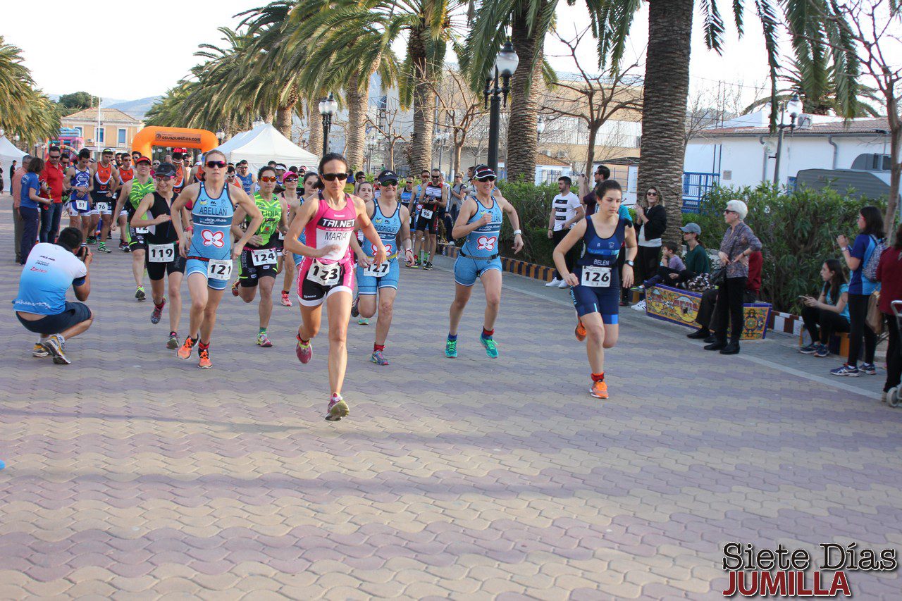 A eso de las 15:30 de la tarde en el Paseo Poeta Lorenzo Guardiola se dio la salida del V Duatlón de Jumilla. El sol reinaba en lo alto, subiendo las temperaturas de la ciudad del altiplano hasta cerca de los 30 grados, algo nada habitual en estas fechas y que afectó a los deportistas, que sufrieron una fuerte deshidratación por la falta de hábito de competición en calor, ya que hasta la pasada semana los entrenamientos y las pruebas disputadas eran con temperaturas mucho m ás bajas.