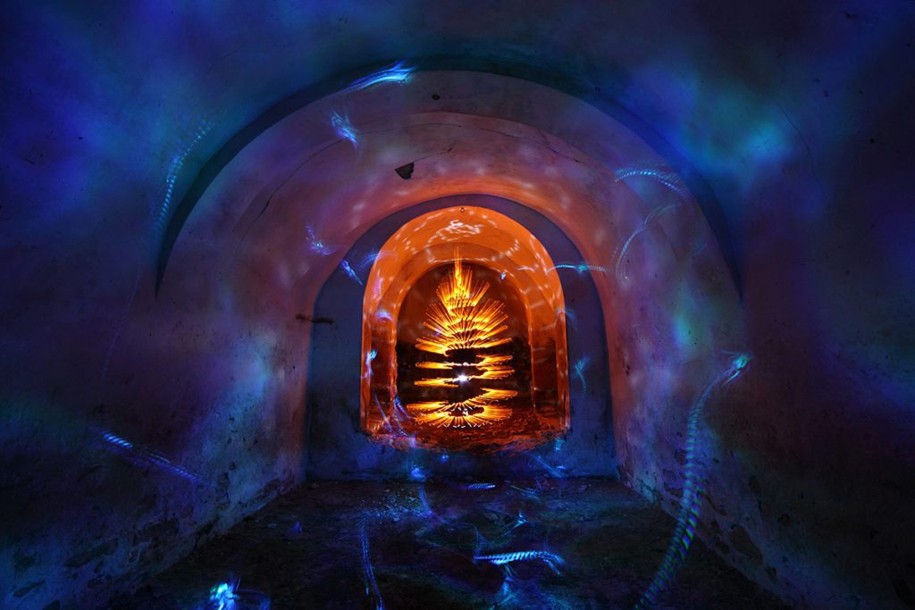 La fotografía “A roales-espiral cálida sobre frío”, está realizada en una bodega cueva de Jumilla, junto a la light painter belga, Mélisa Lefèbvre, de visita en España.