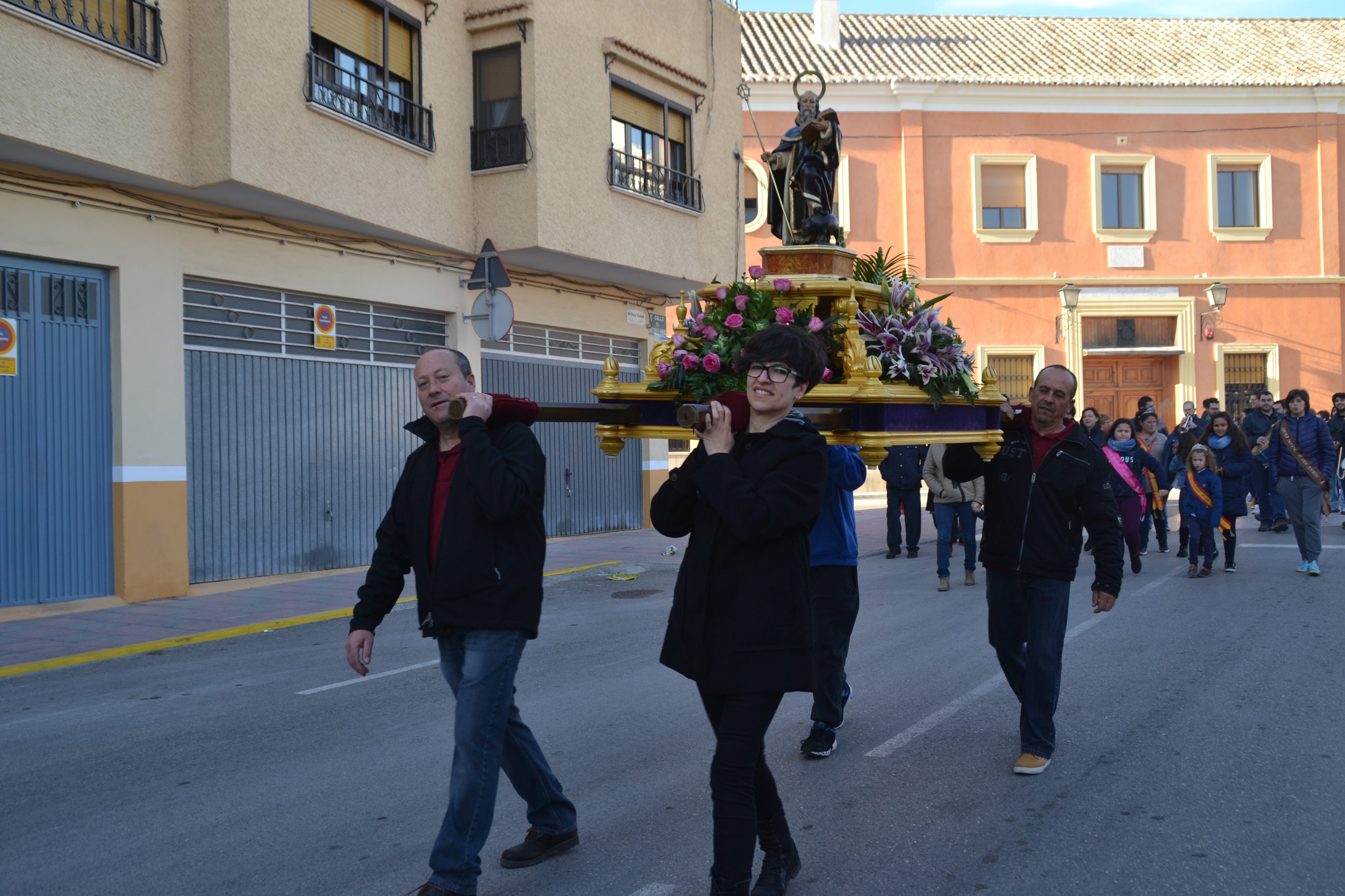 Ya el domingo 15, a las ocho de la mañana empezará el día con la diana acompañada de charanga, así como con el desayuno a los músicos en la casa de los camareros, que este año ostentan tres hermanos, Laura, Irene y Manuel, de 10, 7 y 3 años respectivamente. A las 9  se oficiará la misa en el Asilo, y se procederá posteriormente a la bendición de animales. Una hora más tarde tendrá lugar el pasacalles por el barrio, y ya para las siete y media de la tarde tendrá lugar la subasta de panes, que se llevará a cabo en la carpa que la asociación ha instalado en el propio barrio. A continuación será el Dúo Enigma el que, en el mismo escenario, amenice la velada a los presentes.