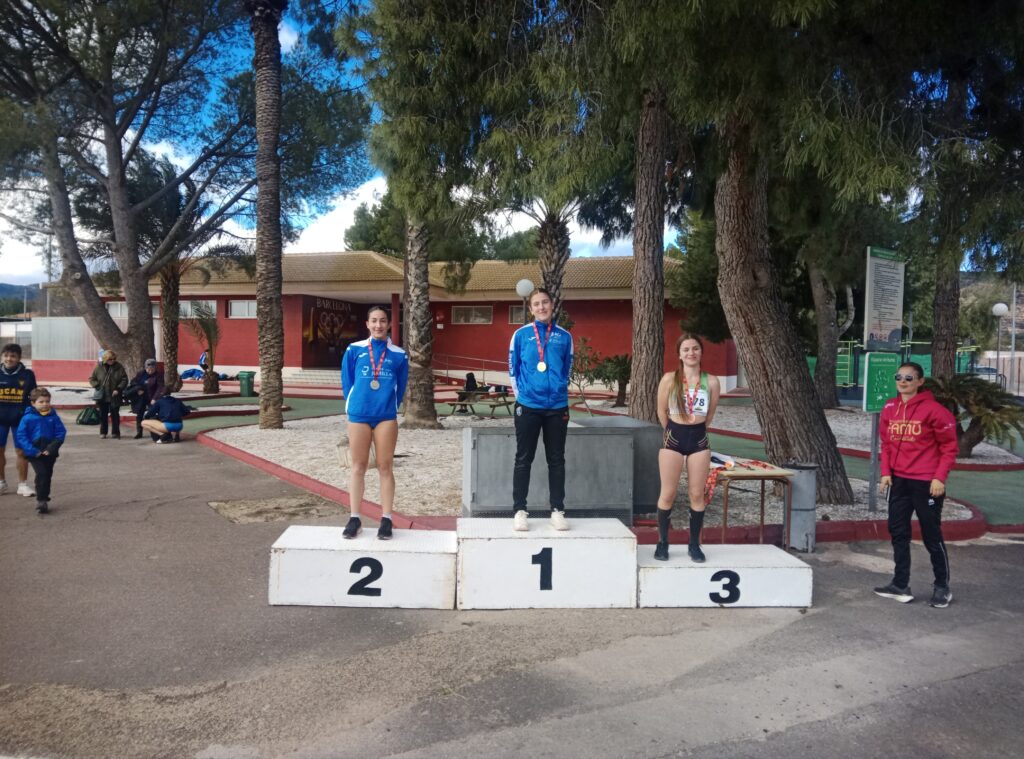 El Athletic Club Vinos DOP Jumilla logró dos medallas en el Campeonato Regional Absoluto de Invierno disputado el domingo en Alhama de Murcia. Ambas se consiguieron en la prueba de triple salto, en las que Beatriz Pérez Mateo y Fátima Hernández Martínez se hicieron con el oro y la plata respectivamente.