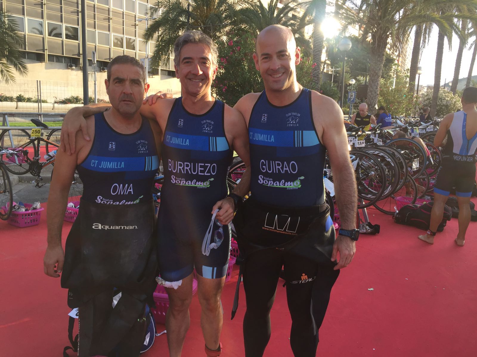 Cuatro de ellos del Club Triatlón Jumilla, de los que Pascual Burruezo, Fran Guirao y Antonio Oma realizaron la distancia Olímpica, siendo Burruezo el más destacado, con un tiempo de 2 h. 26 min. que le valió para ser 49º en la general y segundo en su categoría, V2M.
