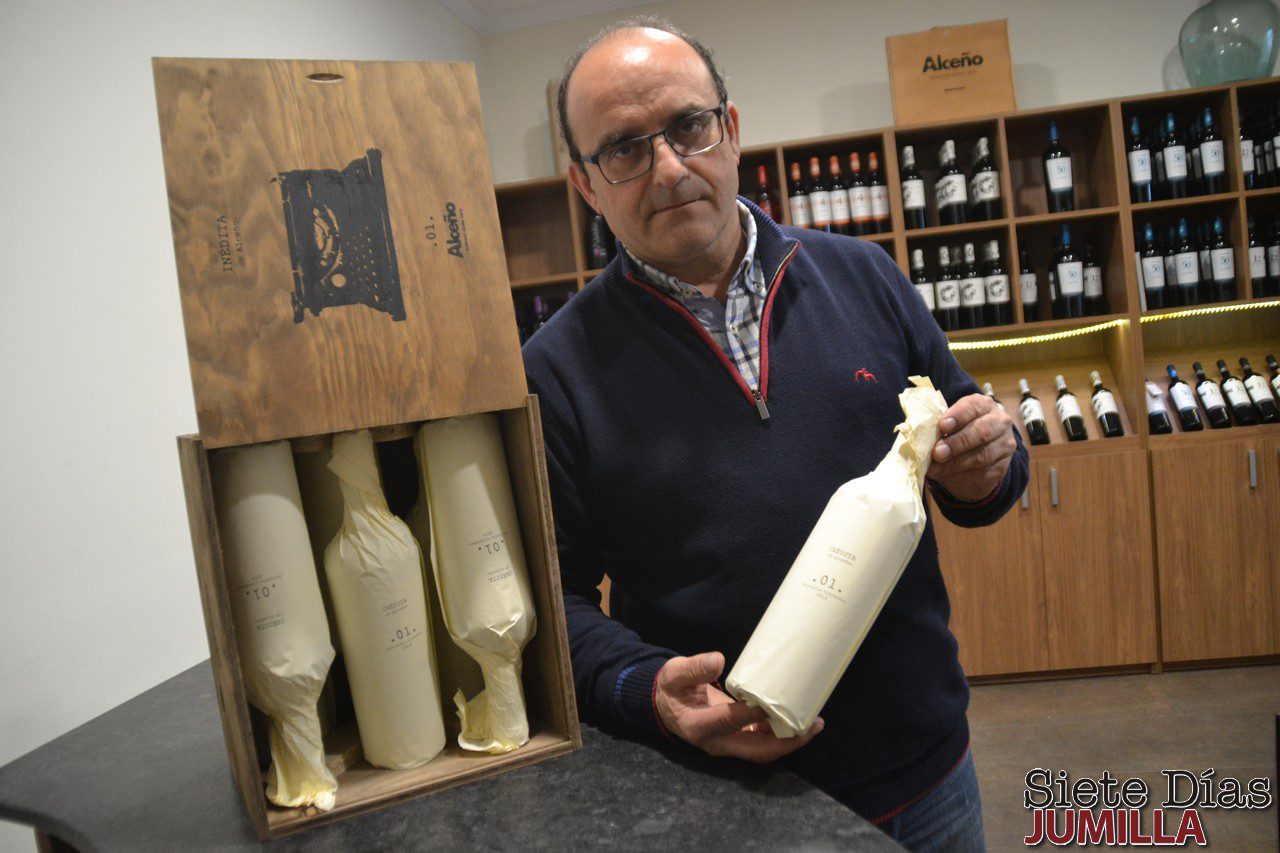 El primer vino de la serie se llama precisamente Inédita, un vino elaborado con la variedad garnacha tintorera, que ya está implantada en Jumilla cuyas uvas proceden de una finca del Término de Arriba, un terreno calizo y pedregoso situado a una altitud de 800 metros y rodeado de monte. Todas las cepas son de pie directo y han sido seleccionadas con una producción inferior a 1,5 kg por planta, para obtener la mejor calidad y un “vino inédito”, según el enólogo de Alceño, Juan Miguel Benítez.