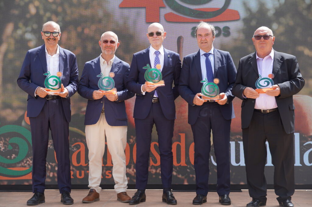 El último de los reconocimientos fue para “una figura de referencia en el sector hortofrutícola nacional”, Joaquín Rey Rodríguez, director general de Fruitgrowing Quality. Desde 2020 colabora de manera constante con Campos de Jumilla, manteniendo la actividad del almacén durante los meses de menor producción de fruta de hueso, cuyo “compromiso, dedicación y cercanía han sido fundamentales para el crecimiento y fortalecimiento de esta cooperativa”.