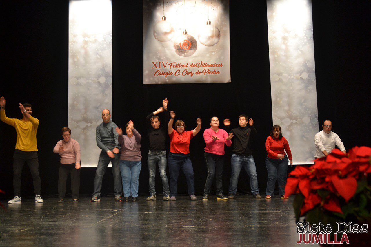 El Festival de Villancicos del Cruz de Piedra es toda una referencia al comenzar la Navidad. En las imágenes se aprecia la participación de los chicos de Aspajunide de la residencia Masvida, del colegio Santa Ana, la directora del Cruz de Piedra, María Francisca Mateo, y alumnos mayores y pequeños del centro anfitrión, así como el pianista y familiares de alumnos.
