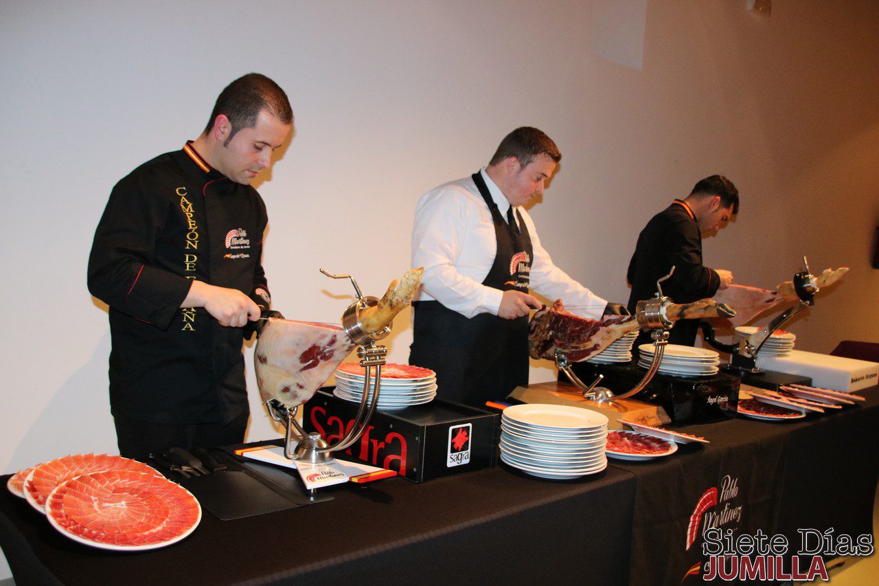 El Museo del Vino de Jumilla se quedó ayer pequeño para acoger a las cerca de 300 personas que asistieron al acto de entrega de los primeros Premios de la Gastronomía Ciudad que organiza Siete Días Jumilla y que ha contado con la estrecha colaboración del diario regional La Verdad, y con el patrocinio del Ayuntamiento de Jumilla, la Comunidad Autónoma a través de la Consejería de Agricultura, Ganadería y Pesca, Aguas de Jumilla y de la empresa García Carrión. Además de amigos y familiares de los distinguidos, se contó con la asistencia de autoridades locales y regionales, entre ellas, la alcaldesa Juana Guardiola, junto a varios miembros de la corporación, el director general de Agricultura, Ganadería y Pesca, Francisco González Zapater y la senadora Seve González. Igualmente se contó con una amplia representación de distintos colectivos, organismos, instituciones, bodegas y empresas jumillanas. En el evento asimismo destacó la presencia de la empresa local Burruezo Alimentación, que presentó su amplia gama de productos, así como del campeón de España de cortadores de jamón, Pablo Martínez, junto a parte de su equipo, que hicieron gala de su buen hacer.