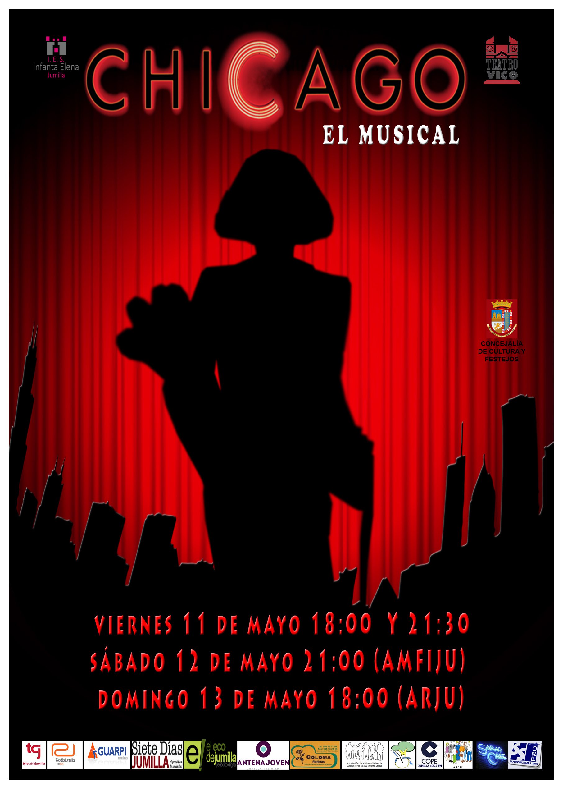 Jumilla ama los musicales y a la vista está, ya que todos los años el IES Infanta Elena deleita a los ciudadanos con espectaculares puestas en escena y en esta ocasión, se han propuesto dejar con la boca abierta a todos, con la representación de “Chicago”.