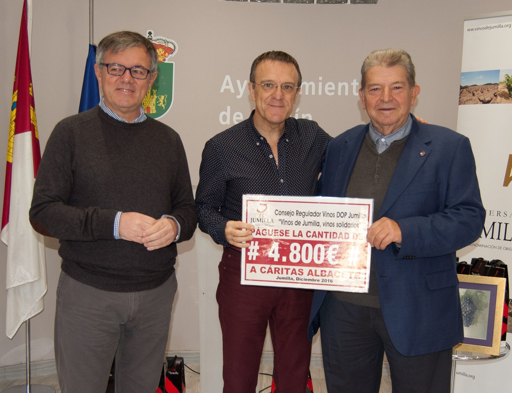 El Consejo Regulador de la Denominación de Origen Protegida Vinos de Jumilla, entregó el pasado lunes en Hellín, un cheque por valor de 4.800 euros al secretario general de Cáritas Albacete, Antonio Garcia Blanquer, en concepto del donativo anual recaudado entre todas las bodegas adscritas a esta Denominación de Origen, para financiar diversos proyectos sociales.