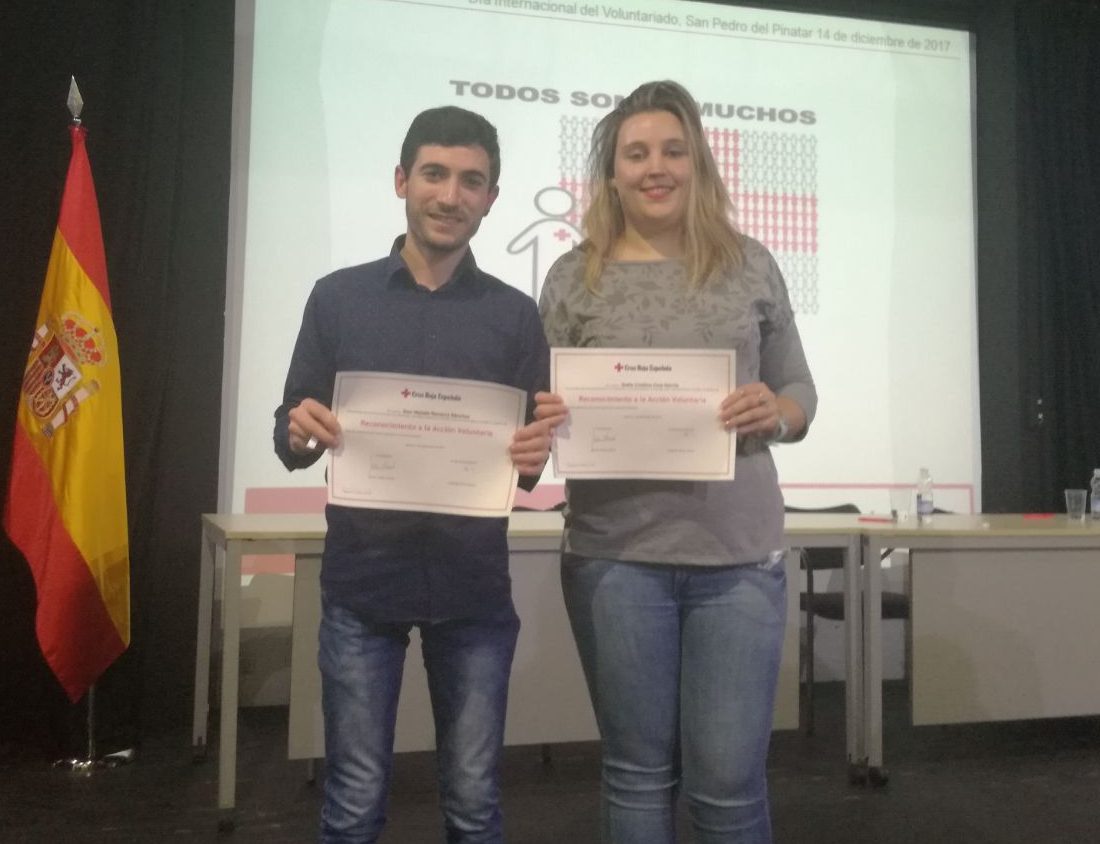 Cruz Roja Española de la Región de Murcia ha reconocido en un acto público celebrado en San Pedro del Pinatar, la labor del jumillano Moisés Navarro Sánchez en favor de esta institución, y a lo largo de 10 años, que son los que el joven lleva dentro de esta organización, así como la de Cristina Cruz García, que está 12 años y actualmente es técnica de los programas de empleo de Cruz Roja en Jumilla.