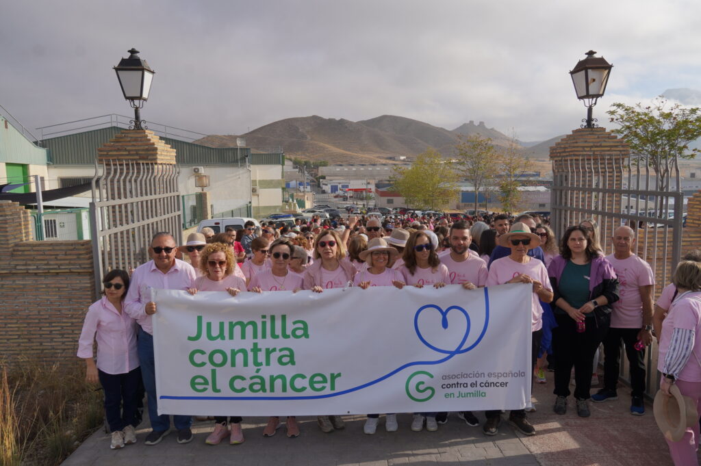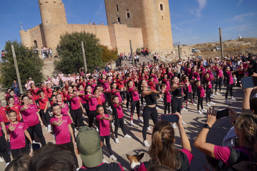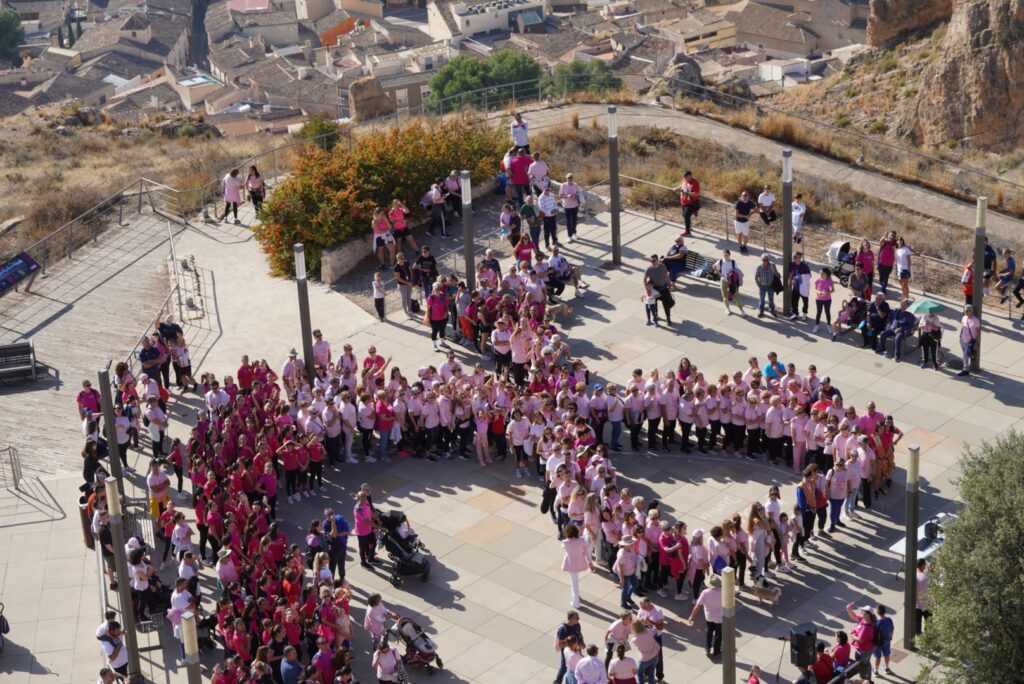 Con la Marcha Rosa al castillo finalizaron las actividades organizadas por la Junta Local de la AECC para conmemorar el Día Mundial Contra el Cáncer de Mama. Participaron decenas de personas que concluyeron componiendo el tradicional lazo rosa y que disfrutaron de las actuaciones del Club Fit Kid Jumilla y de Los amigos del baile.