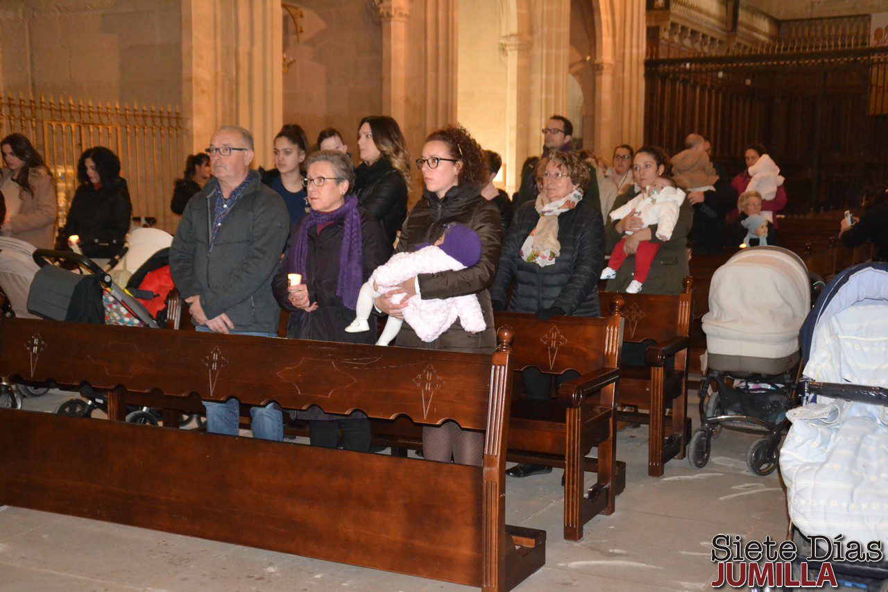 El pasado jueves se celebró la festividad de la Candelaria, y como cada año en la iglesia de Santiago, tras la eucaristía, el párroco procedió a la presentación de los niños ante la imagen de la Candelaria, tal y como marca la tradición. Al acto asistieron cerca de cuarenta niños a los que acompañaban sus padres, hermanos y en algunas ocasiones sus abuelos.