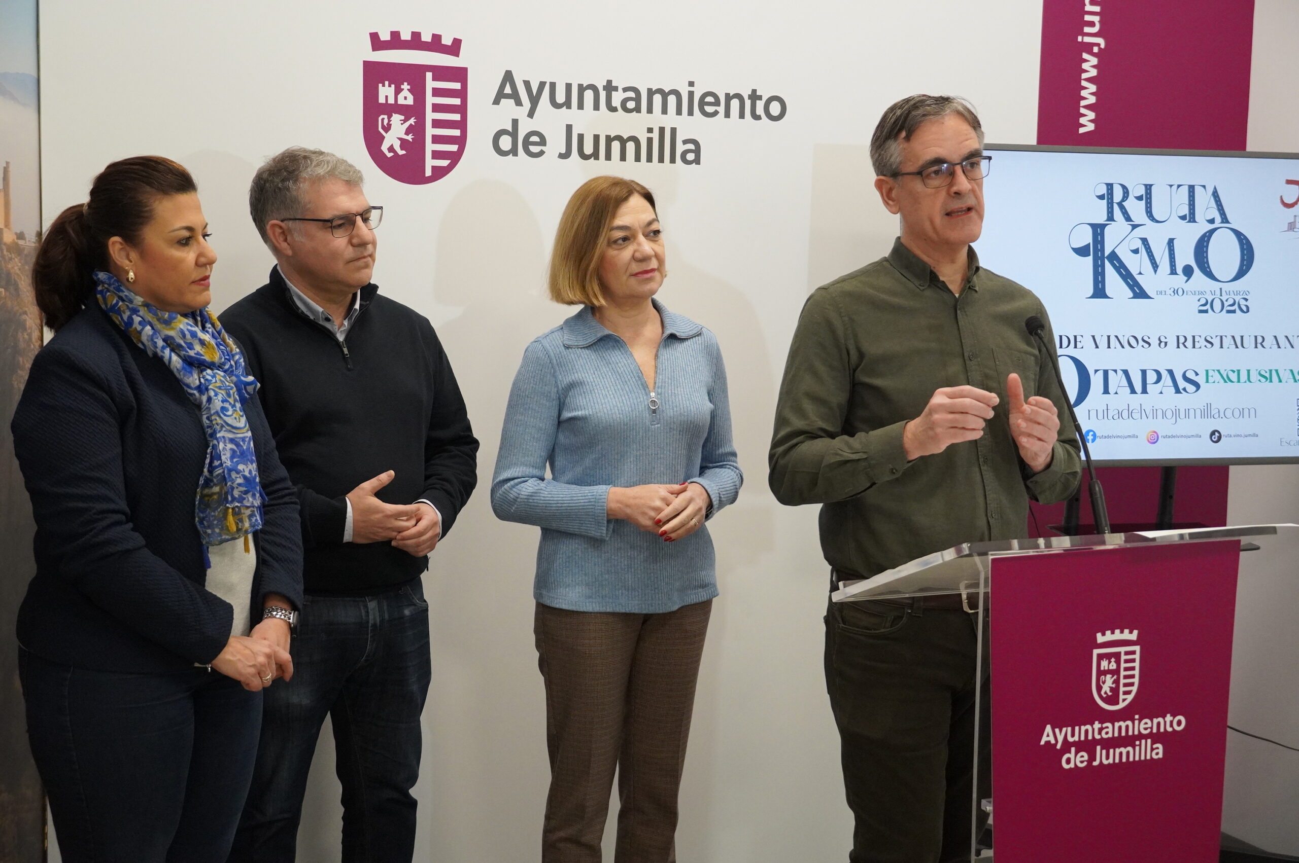 Esta actividad ha sido presentada por parte de la alcaldesa de Jumilla Seve González, la concejal de Turismo Asun Navarro, el alcalde de Hellín Manuel Serena y el presidente de la Asociación Ruta del Vino Silvano García.
