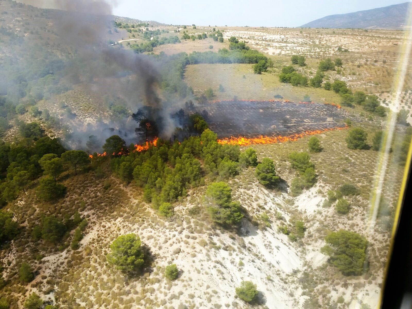 En el lugar del incendio han trabajado bomberos del parque local de Jumilla (3 bomberos y 2 vehículos, un camión nodriza pesado y un rural pesado, bomberos del parque zonal de Yecla (2 bomberos y 1 vehículo, un camión rural pesado), brigadas de intervención rápida de Mula y El Valle (4 brigadistas y 2 vehículos todo terreno), brigada forestal de Yecla, Blanca y Calasparra con agente medioambiental al mando, Helicóptero de extinción de la Pila (piloto y mecánico y Técnico de Extinción al mando, agente medioambiental y brigada helitransportada), 2 Técnicos (Técnico apoyo y Técnico de seguridad con dos vehículos), Jefe de comarca y Protección Civil de Jumilla en tareas de apoyo logístico con 2 voluntarios y un vehículo.
