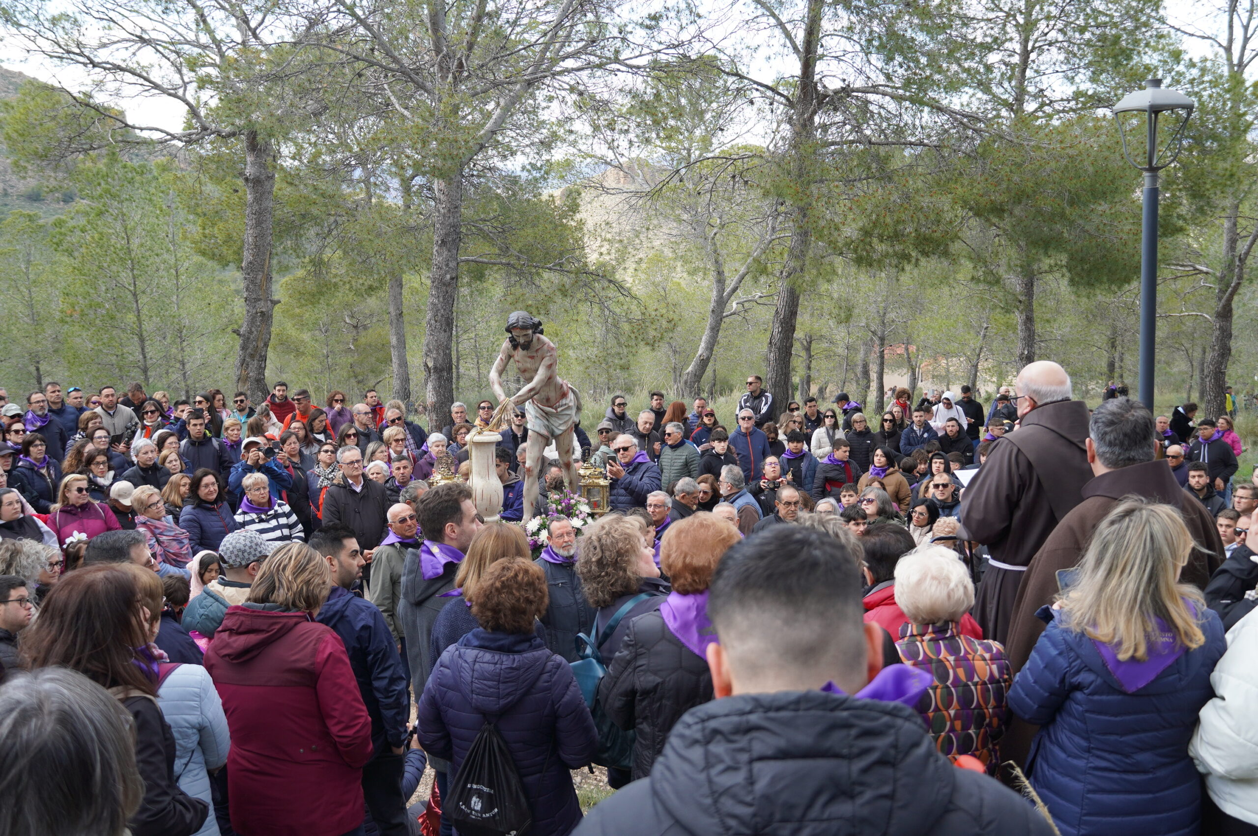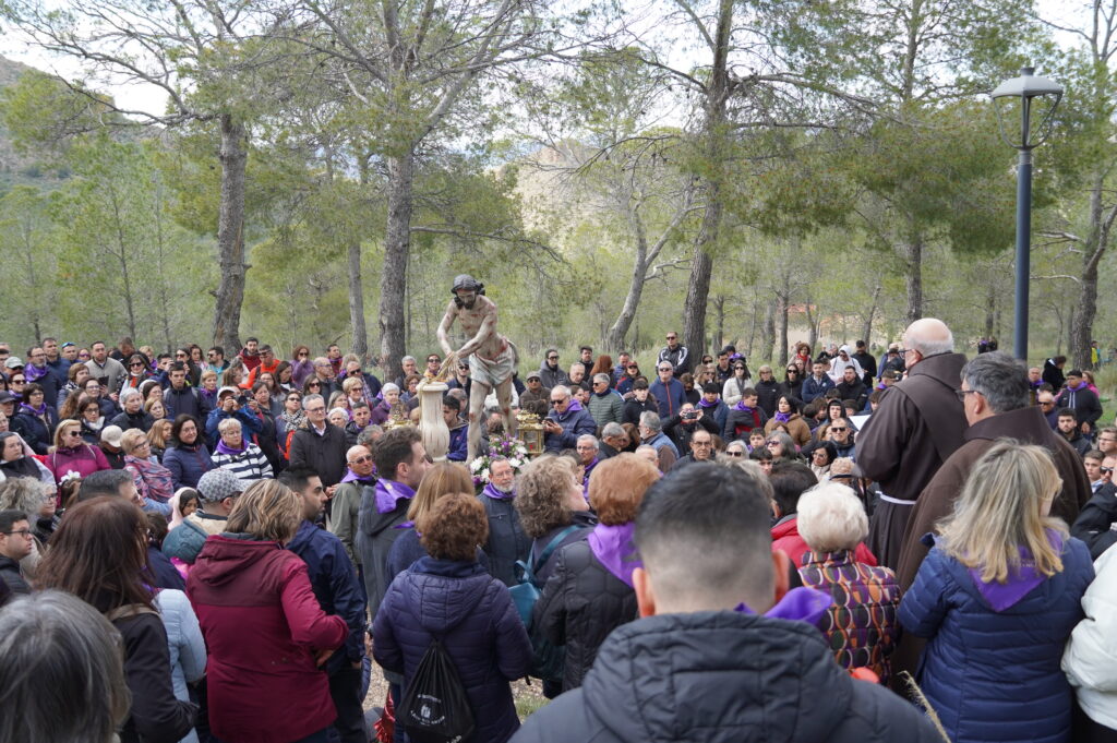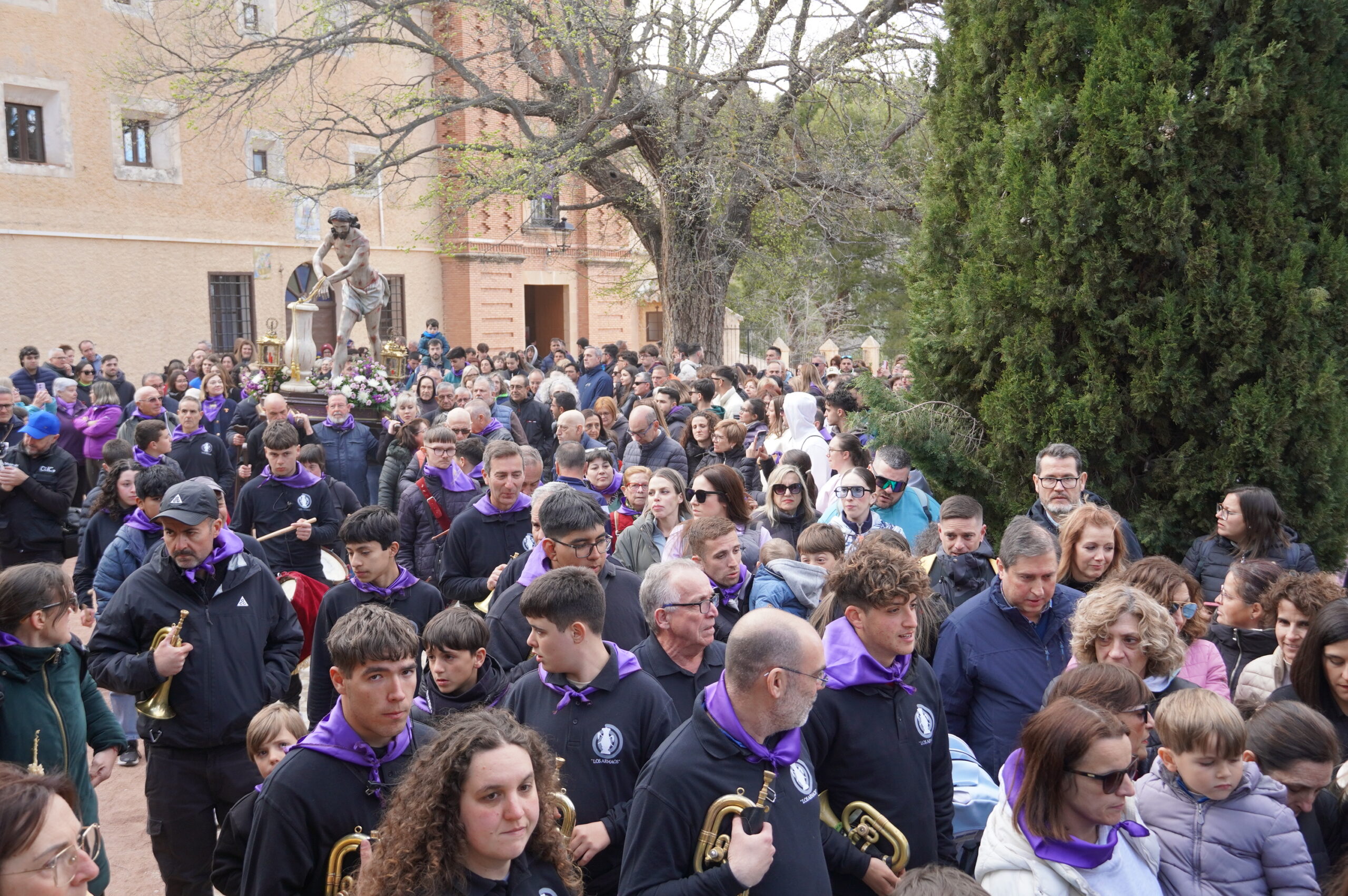 El Cristo Amarrado a la Columna ya está en Jumilla. La venerada imagen de Salzillo partió de su morada habitual, el convento franciscano de Santa Ana del Monte, acompañada de cientos de fieles y devotos, hasta llegar a la ermita de San Agustín, y entrar a reverenciar a la Patrona de Jumilla, la Virgen de la Asunción, y seguir su camino hasta la iglesia de Santiago.