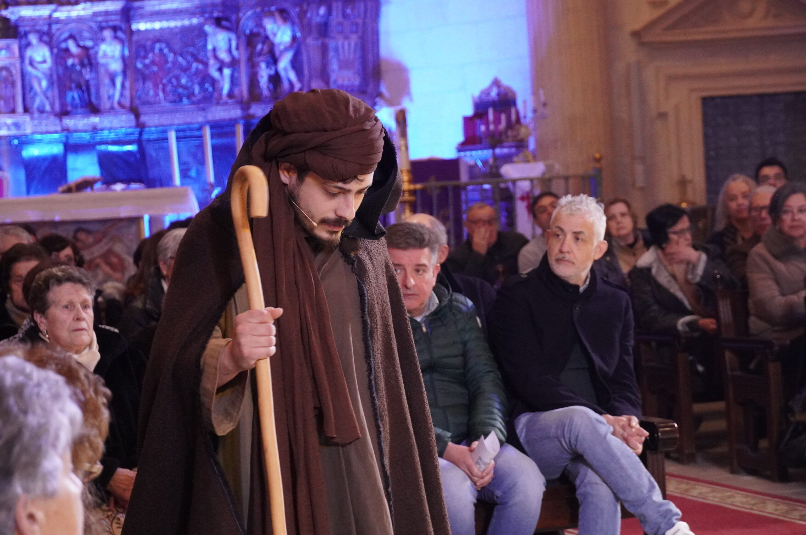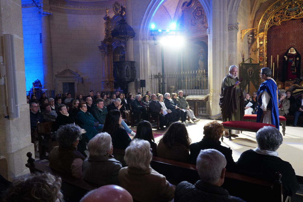 El altar de la iglesia Mayor de Santiago volvió a ser el escenario de la representación del “Auto de la Pasión” de Lucas Fernández, adaptado por el catedrático de Filología Románica Juan Miguel Valero.