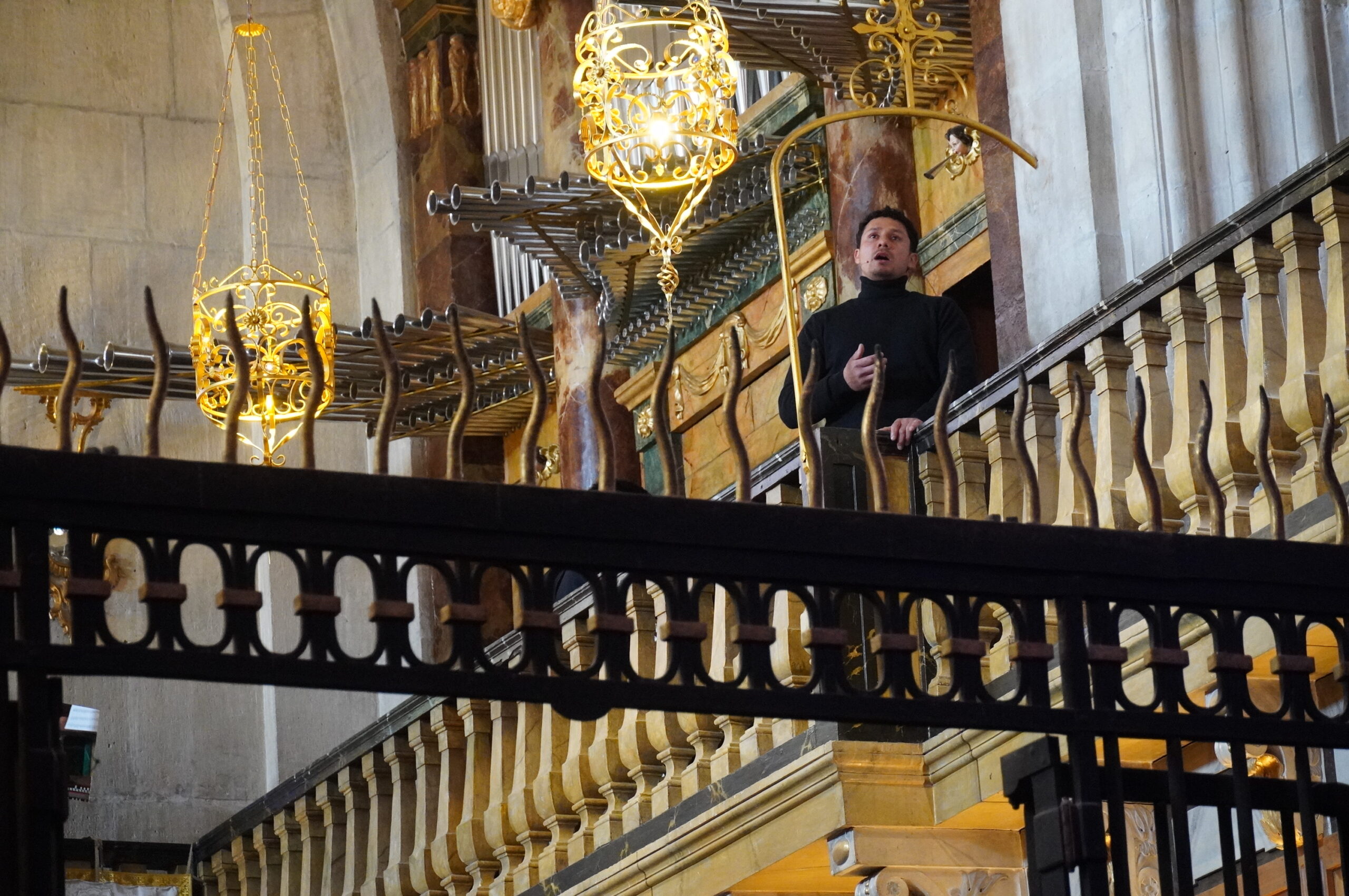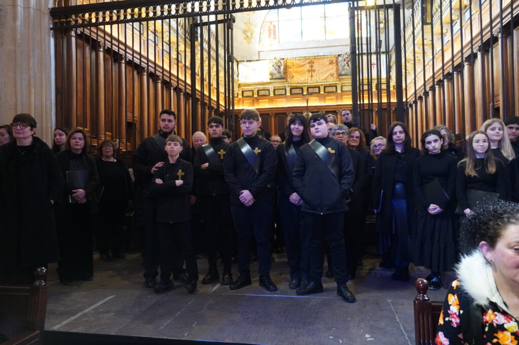 Sin olvidar la magistral interpretación de la música sacra y medieval al órgano por parte de Guillermo García Villaverde. Sopranos, contraltos, tenores, bajos y la intervención de Cornetas y Tambores Devoción.
