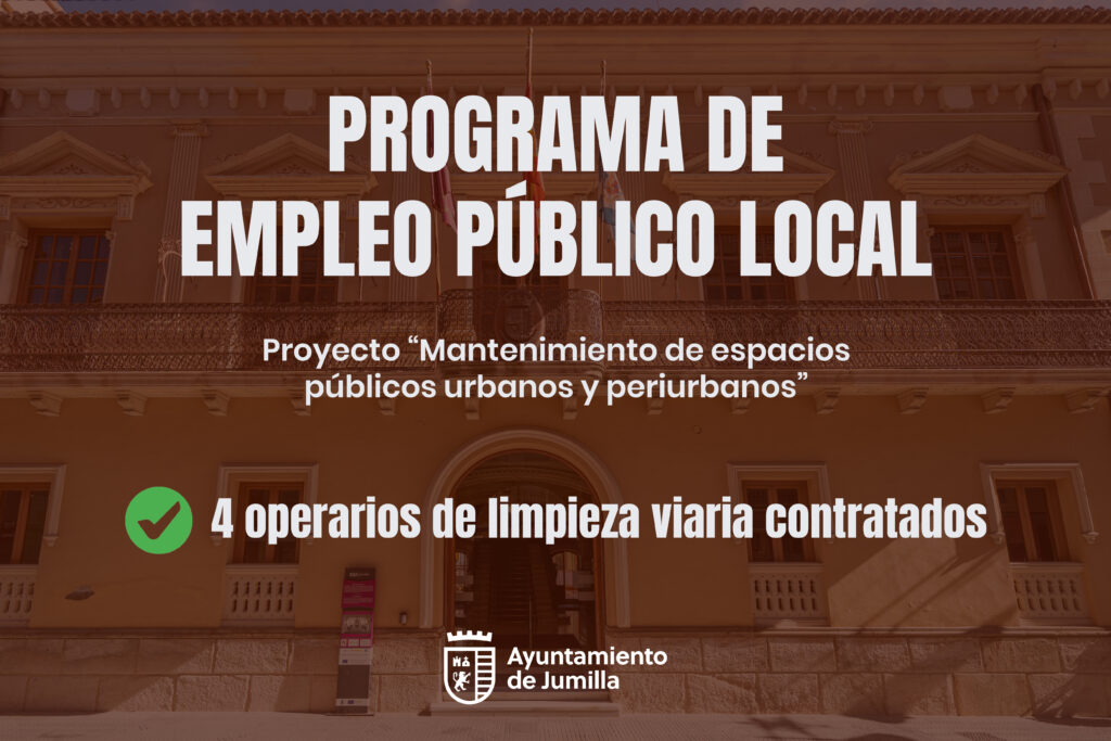 El Ayuntamiento de Jumilla ha contratado a cuatro operarios de servicios y limpieza viaria, dentro del Programa de Empleo Público Local impulsado por el Servicio de Empleo y Formación de la Región de Murcia (SEF).