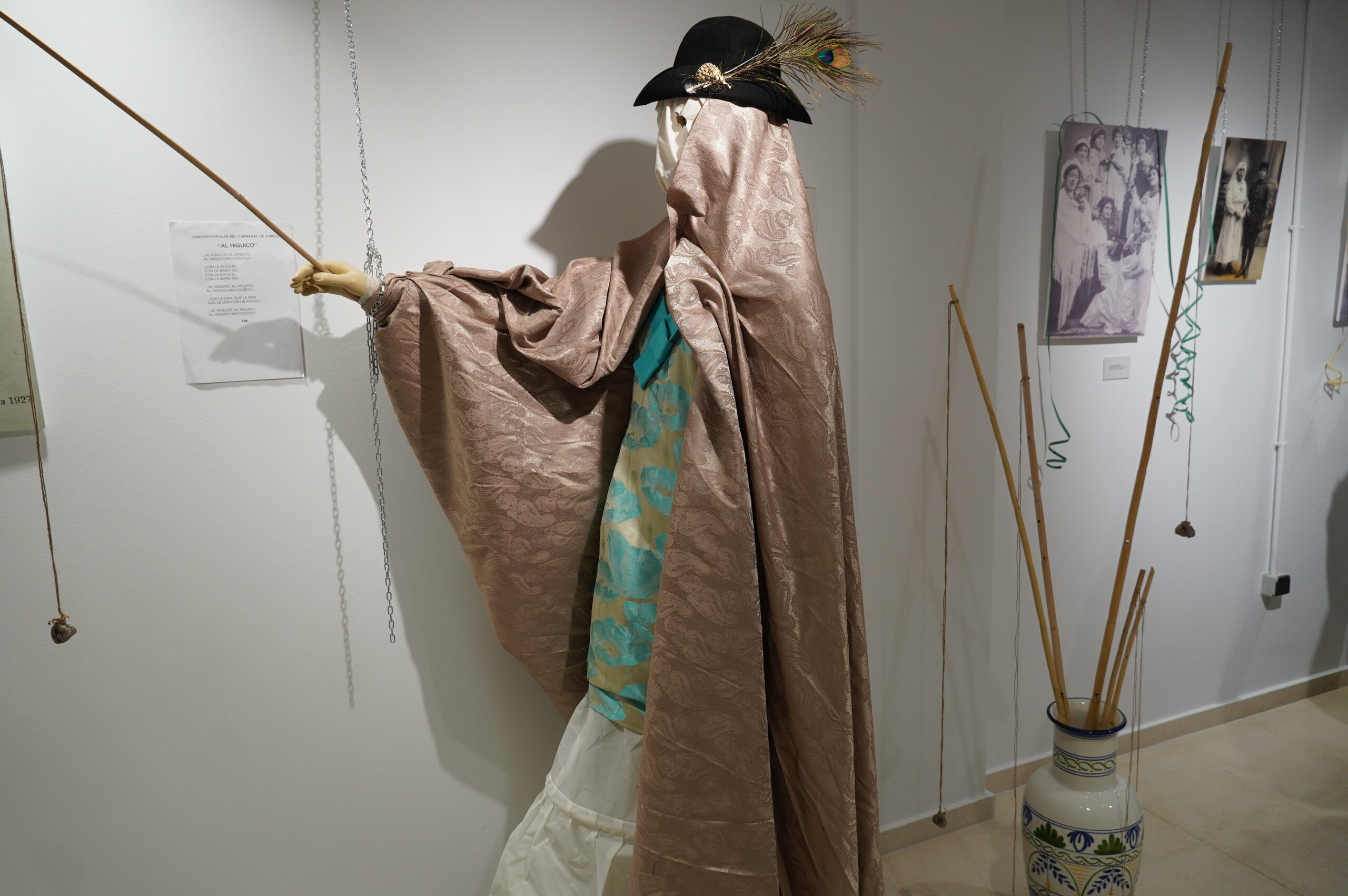 De esta forma, la exposición recoge fotografías antiguas de José Antonio Tomás, alguna del año 1.915 y otras de las décadas de los 80, 90 y 2.000, así como documentos y fotos de revistas, de ejemplares del Picacho, de la revista de la Peña La Alborga y de Siete Días Jumilla. En un rincón de la sala se reproduce el espacio de una casa antigua, con un baúl y un perchero donde se guardaban las ropas viejas que utilizaban los mascarones para disfrazarse.