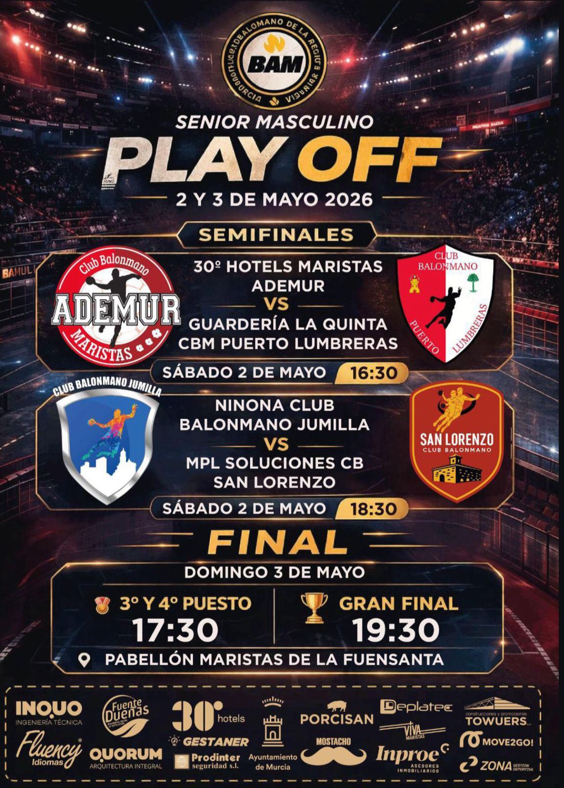 La competición arrancará el sábado con la primera semifinal entre Maristas Ademur y CBM Puerto Lumbreras (17:00 horas). Posteriormente, a las 19:00 horas, será el turno del CBM Jumilla, que se medirá al CB San Lorenzo en la segunda semifinal.