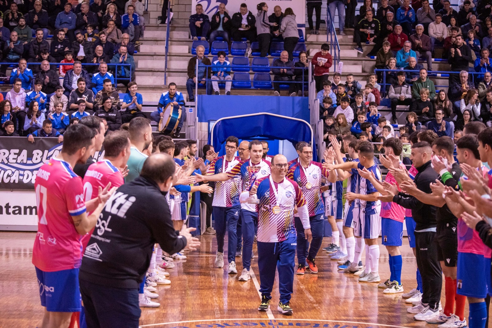 El CFS Jumilla realizó un homenaje al CD Aspajunide por su reciente título de campeón de España FEDDI. Los dos equipos hicieron el pasillo a los campeones y el jugador Pedro Olivares realizó el saque de honor.