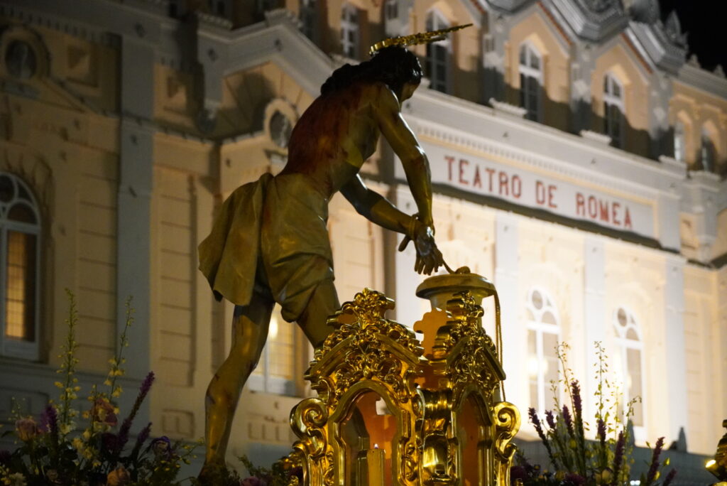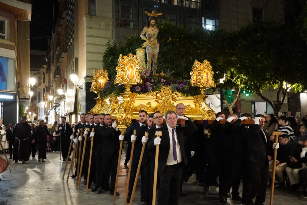 Campos ha añadido: “Estamos muy satisfechos, por un lado, por la posibilidad de mostrar a todo el mundo la gran imagen que tienen los padres franciscanos y que podemos contemplar a diario en su convento, y por otro lado, por los cambios que hemos introducido, uno de ellos, ha sido la elevación de la imagen del Cristo Amarrado sobre una peana con la forma del término municipal de Jumilla, de esta forma queríamos representar que nuestra querida imagen se encuentra en cada rincón de nuestro territorio”.
