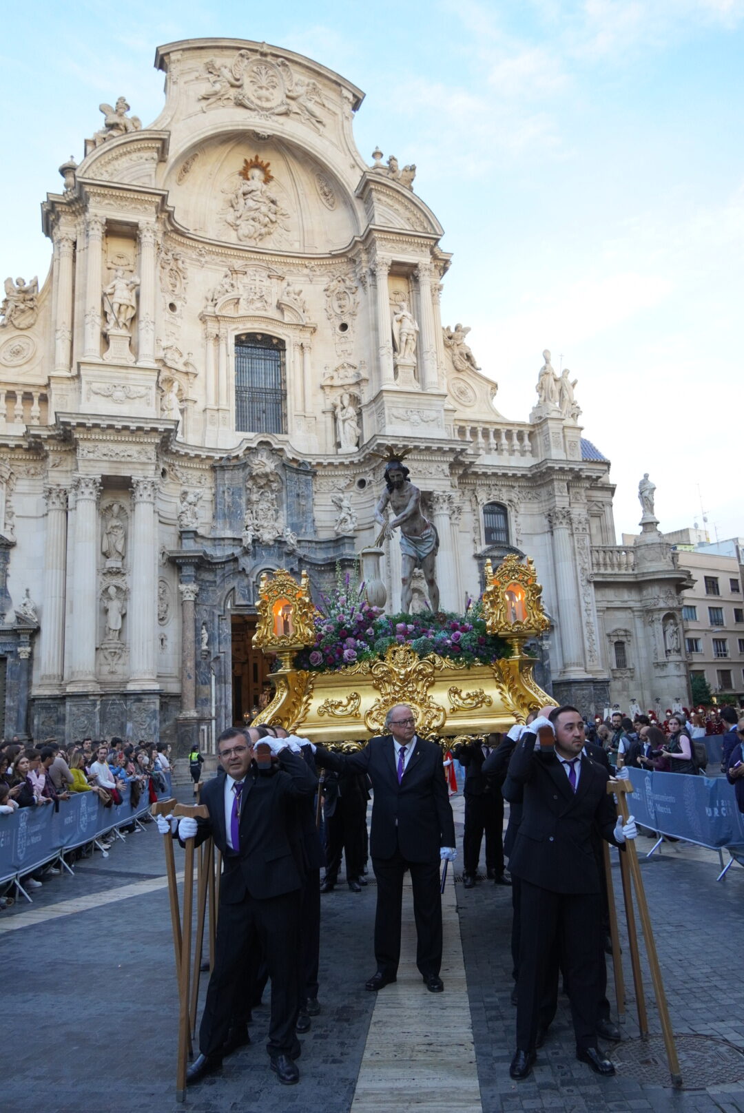 Fueron 14 los pasos elegidos, entre 700 hermandades y cofradías de la diócesis, para participar en la Magna Procesión Jubilar de Murcia. Una de estas imágenes fue la del Cristo Amarrado a la Columna que despertó, junto a los Armaos, la admiración y la devoción, entre las decenas de miles de personas que se dieron cita en las calles de la capital, muchos de ellos, jumillanos.
