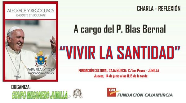 Será ofrecida por el padre Blas Bernal y el título de la misma es ‘Vivir la Santidad’. Esta charla se va a llevar a cabo en el aula cultural de la Fundación Caja Murcia a partir de las 20:15 horas.
