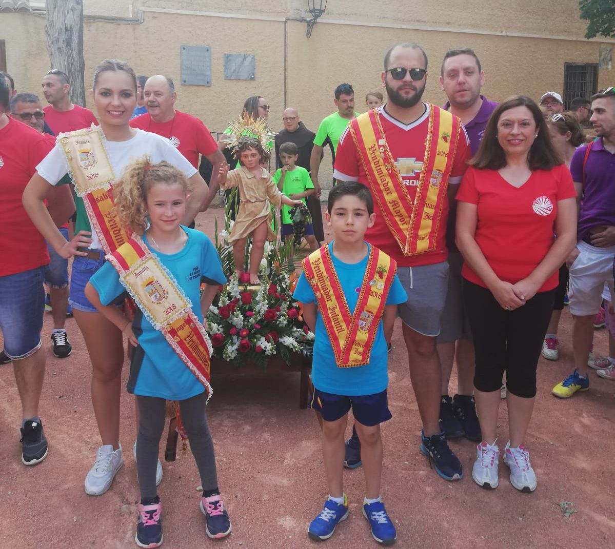 La imagen del Niño de las Uvas ya se encuentra en Jumilla para participar en los actos que desarrolla la Federación de Peñas de la Fiesta de la Vendimia en la Feria de agosto.