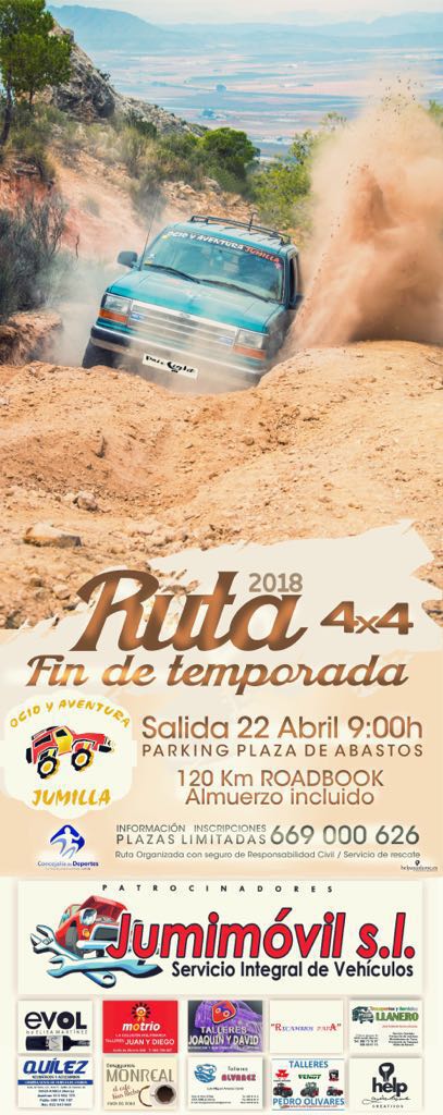 El Club Ocio y Aventura de Jumilla, y gracias a la colaboración de la Concejalía de Deportes, pondrá este domingo el colofón al presente curso con la celebración de la Ruta 4×4 Fin de Temporada 2018.