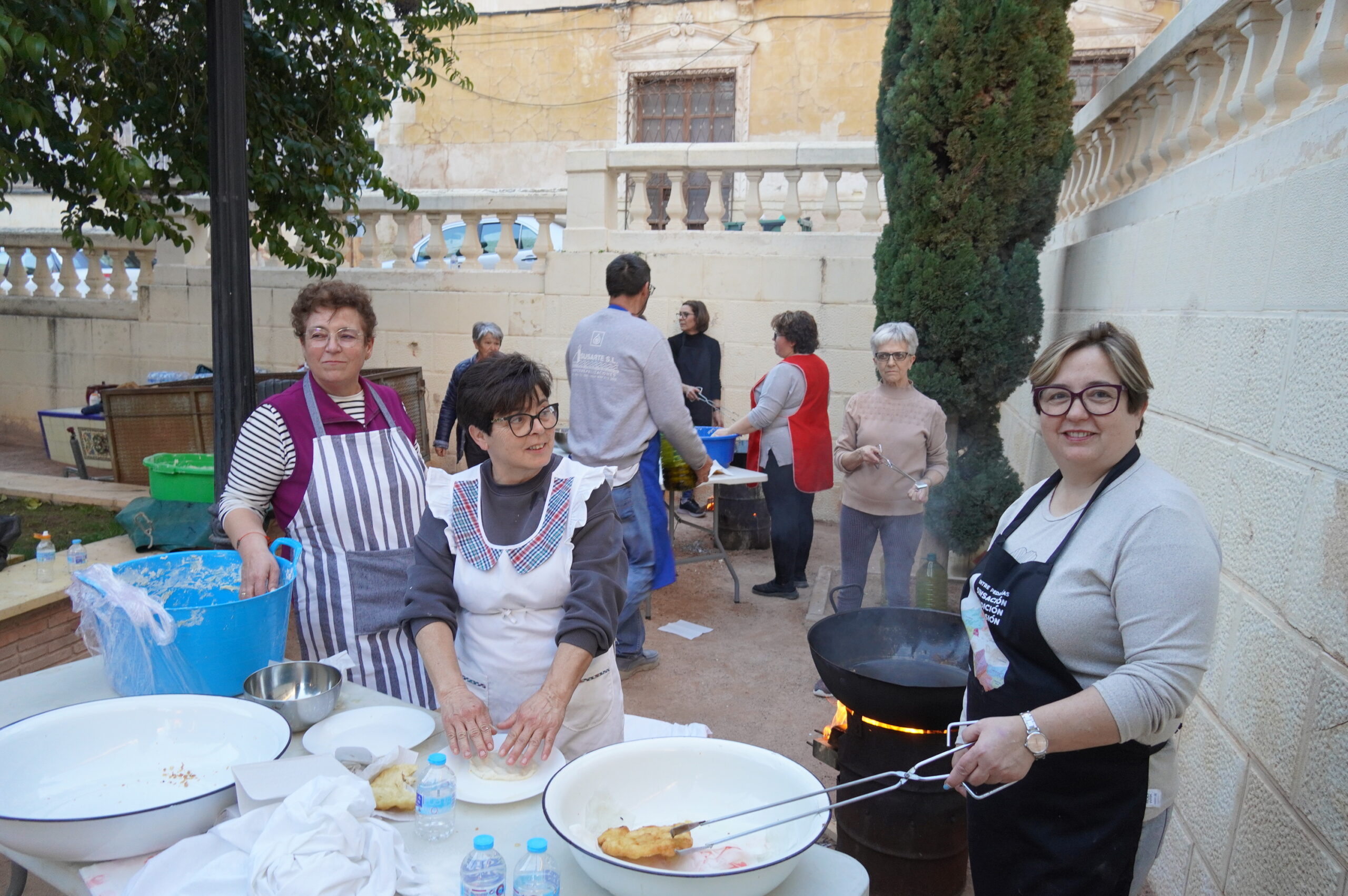 Fritillas y horadás con chocolate para atraer al personal, y una cola que no acababa para poder degustar esa merienda tan tradicional.