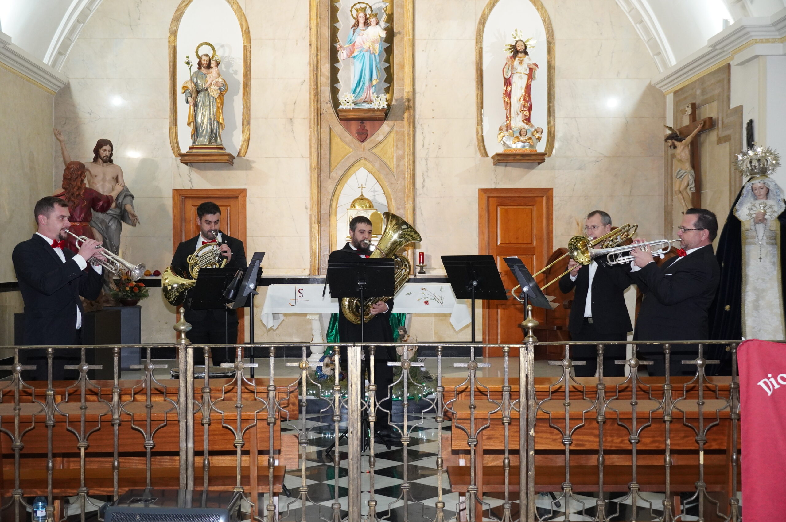 Por su parte, el concierto tuvo lugar en la Casa Misionera San José (Dominicas), con gran asistencia de público, y estuvo a cargo del quinteto de metales Jumilla Brass Quintet que interpretaron un repertorio formado por “Just a Closer Walk”, “Hércules”, “Frozen”, “El libro de la selva”, “Vivo por ella”, “El tamborilero”, “El burrito sabanero”, “Ya vienen los reyes” y otros villancicos populares.