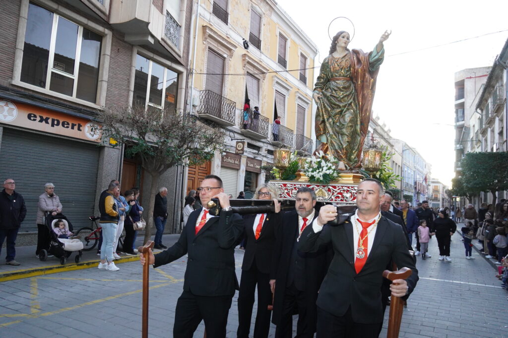 Las imágenes iban portadas a hombros por miembros de la hermandad y se contó con la música de la mano de la Banda de Cornetas y Tambores Nuestra Señora del Dolor de Hellín.