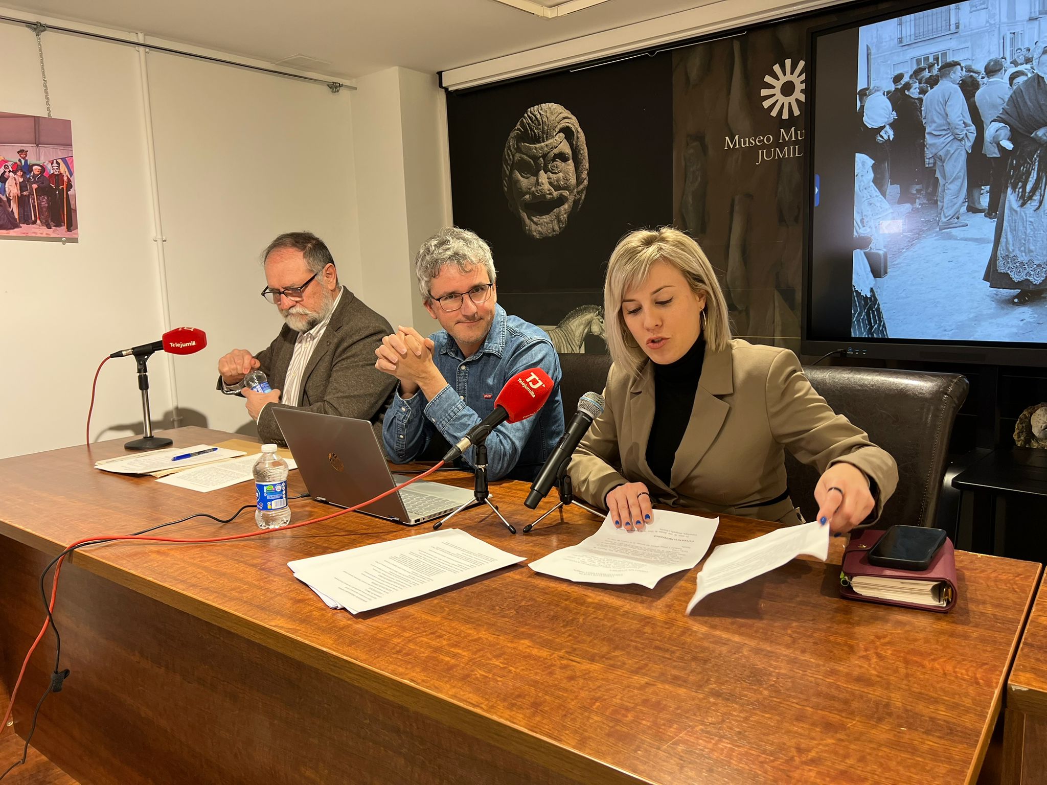 El arqueólogo, Emiliano Hernández, y el periodista J. J. Melero, ambos historiadores locales, impartieron este lunes en el Museo de Etnografía y Ciencias Jerónimo Molina la conferencia titulada “El Carnaval de Jumilla: entre plumas, risas y mascarones”, enmarcada en las actividades programadas por la Concejalía de Cultura.