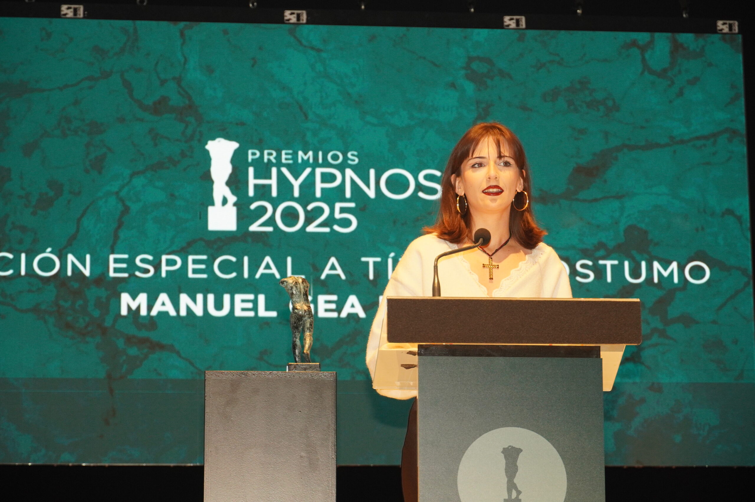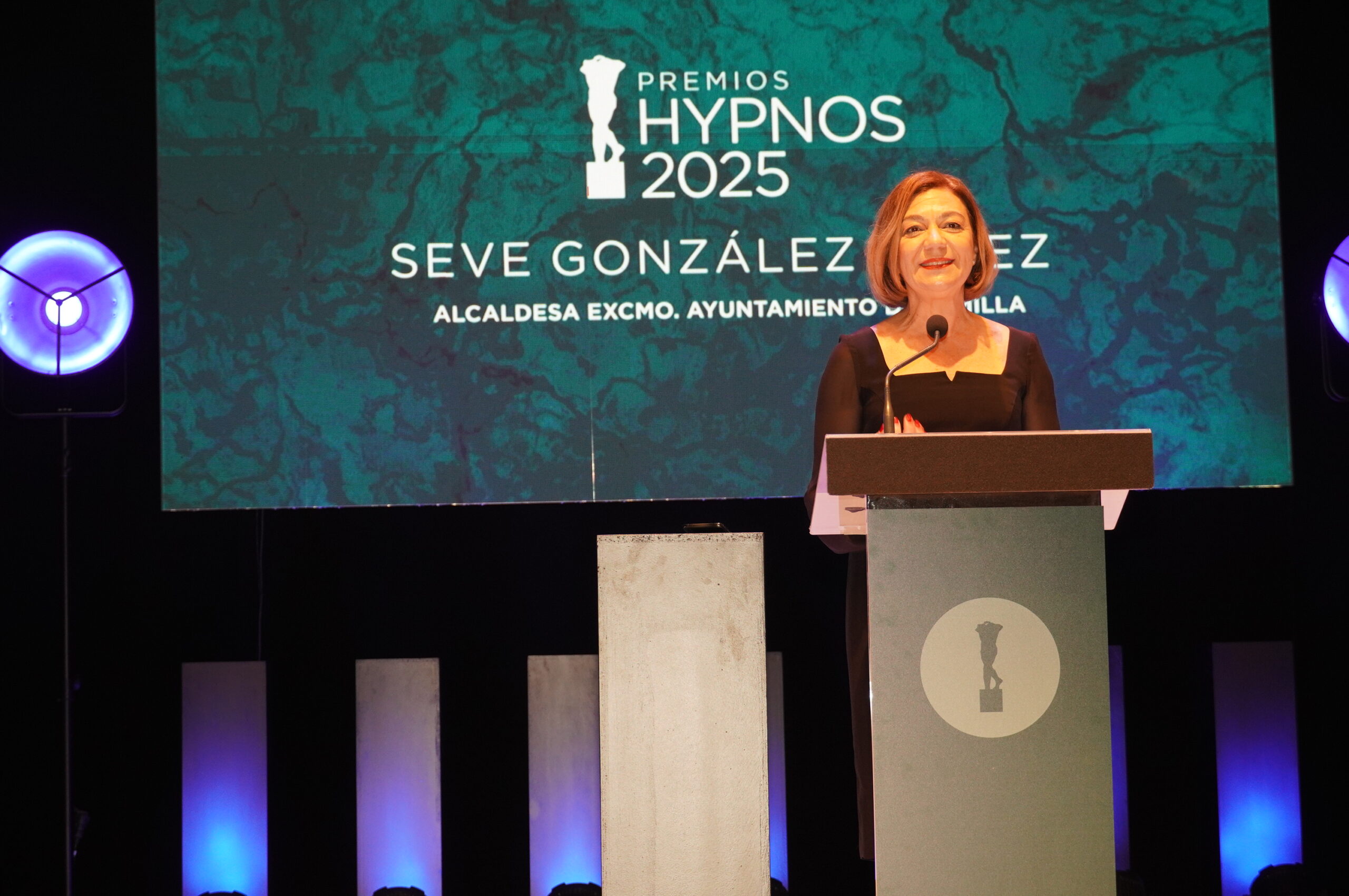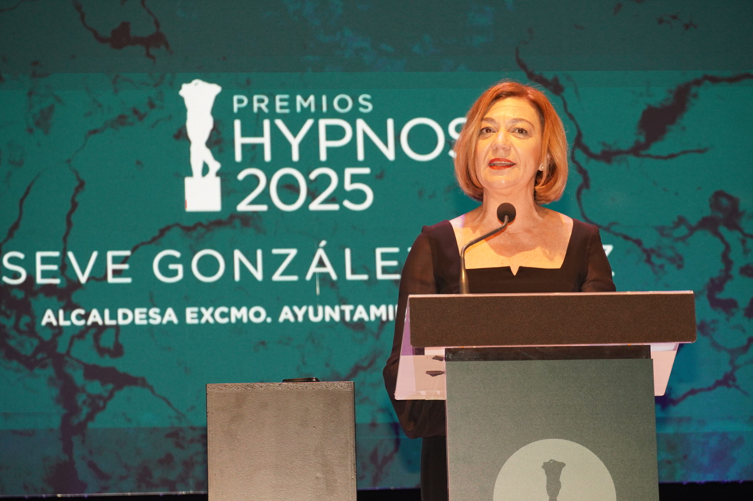 “Hoy celebramos lo mejor que tiene Jumilla: su gente. Es un homenaje sincero a personas que, con su trabajo, esfuerzo, pasión y jumillanía hacen de nuestra ciudad un lugar mejor. Jumilla os debe mucho”, así comenzó su intervención la alcaldesa, Seve González, en el acto de entrega de los Premios Hypnos 2025.