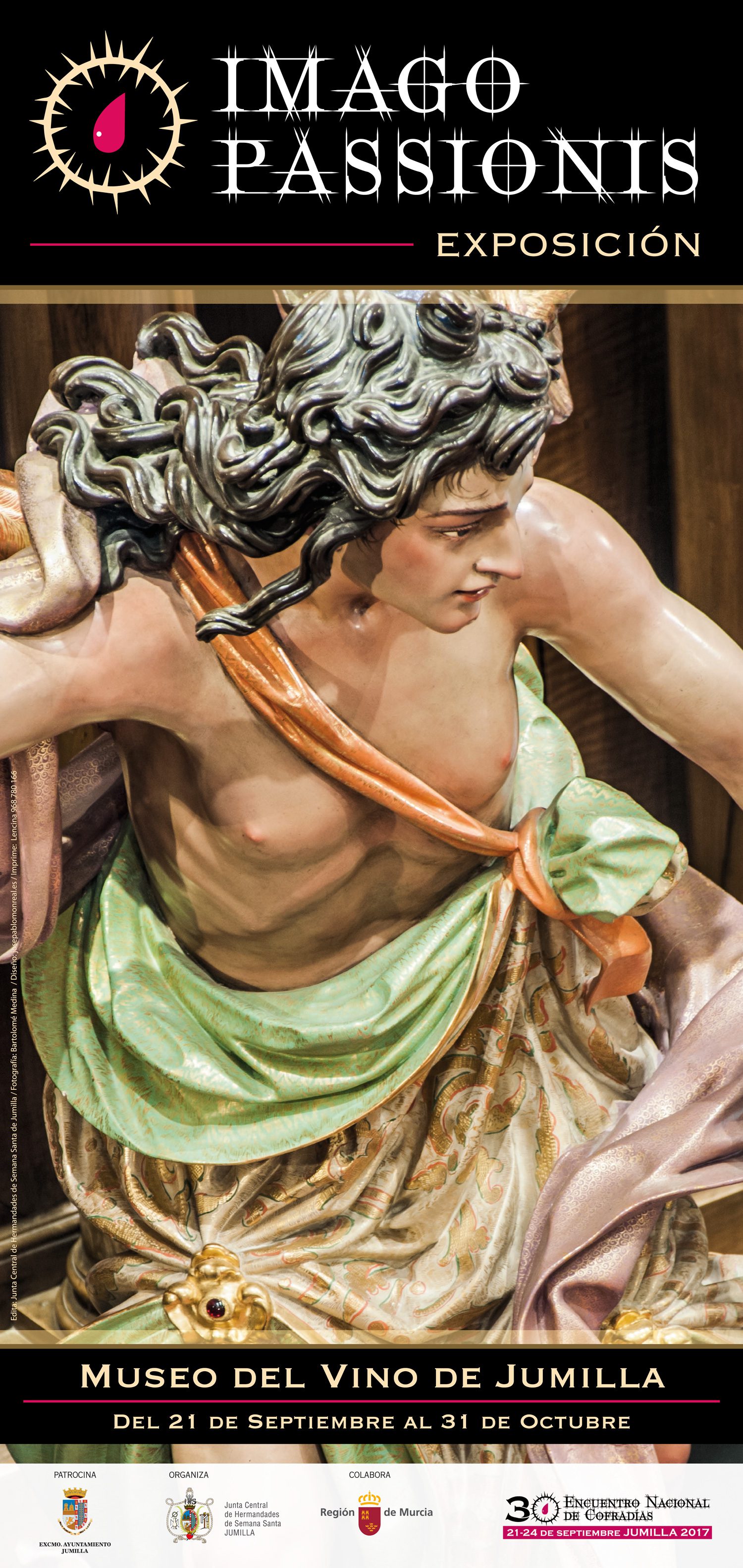 Esta exposición, bajo el título de “Imago Passionis”, “La Imagen o Representación de la Pasión”, mostrará la forma en que la Pasión, Muerte y Resurrección de Cristo y la liturgia de la Semana Santa, toman forma y son modelados por la piedad y devoción del pueblo de Jumilla para convertirse, a través de manifestaciones artísticas, en expresiones plásticas de lo sagrado, como sublimes imágenes y símbolos de los Misterios de la Pasión, con el fin último de profesar culto y veneración por medio de la religiosidad popular jumillana.