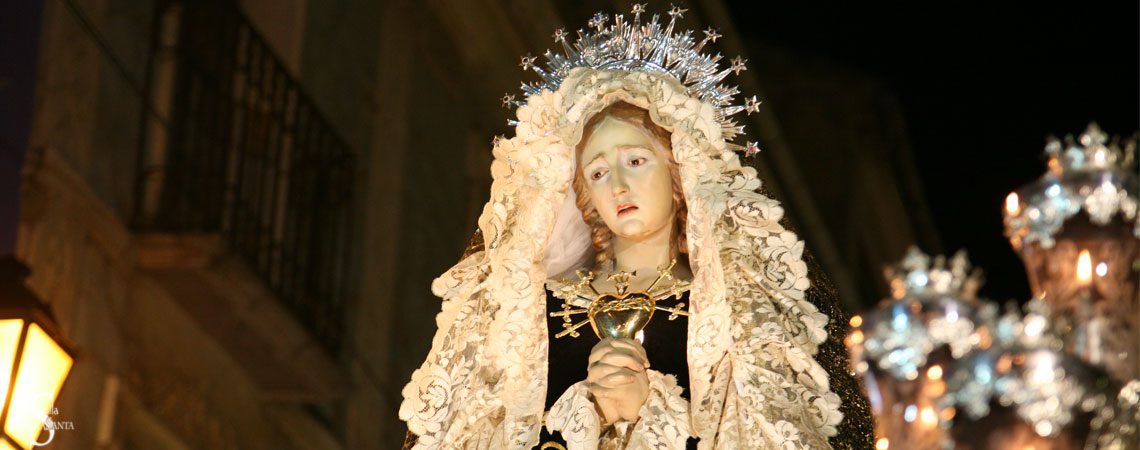 La Hermandad de Nuestra Señora de la Soledad, debió tener sus orígenes en la fundación de la Cofradía de Nuestro Padre Jesús Nazareno, en el siglo XVIII. Su autonomía se evidencia entre 1915 a 1963. Durante el siglo XIX y mitad del siglo XX, las imágenes del Nazareno y de la Virgen de la Soledad estuvieron bajo el patrocinio y mecenazgo de los Pérez de los Cobos, quienes no escatimaron medios para conseguir el esplendor de los dos pasos procesionales.