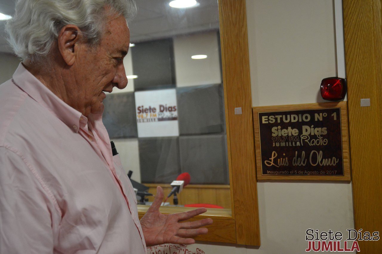l popular y veterano locutor y periodista Luis del Olmo ha inaugurado esta tarde el estudio nº 1 de la emisora Siete Días Radio de Jumilla, y que ya lleva su nombre. Tras ello ha mantenido una amena entrevista en la que ha puesto de relieve la importancia de las fiestas, el vino, y las riquezas con las que cuenta la ciudad. Del Olmo también ha firmado en el libro de honor del grupo de comunicación Siete Días Jumilla, deseando lo mejor a todo el equipo.