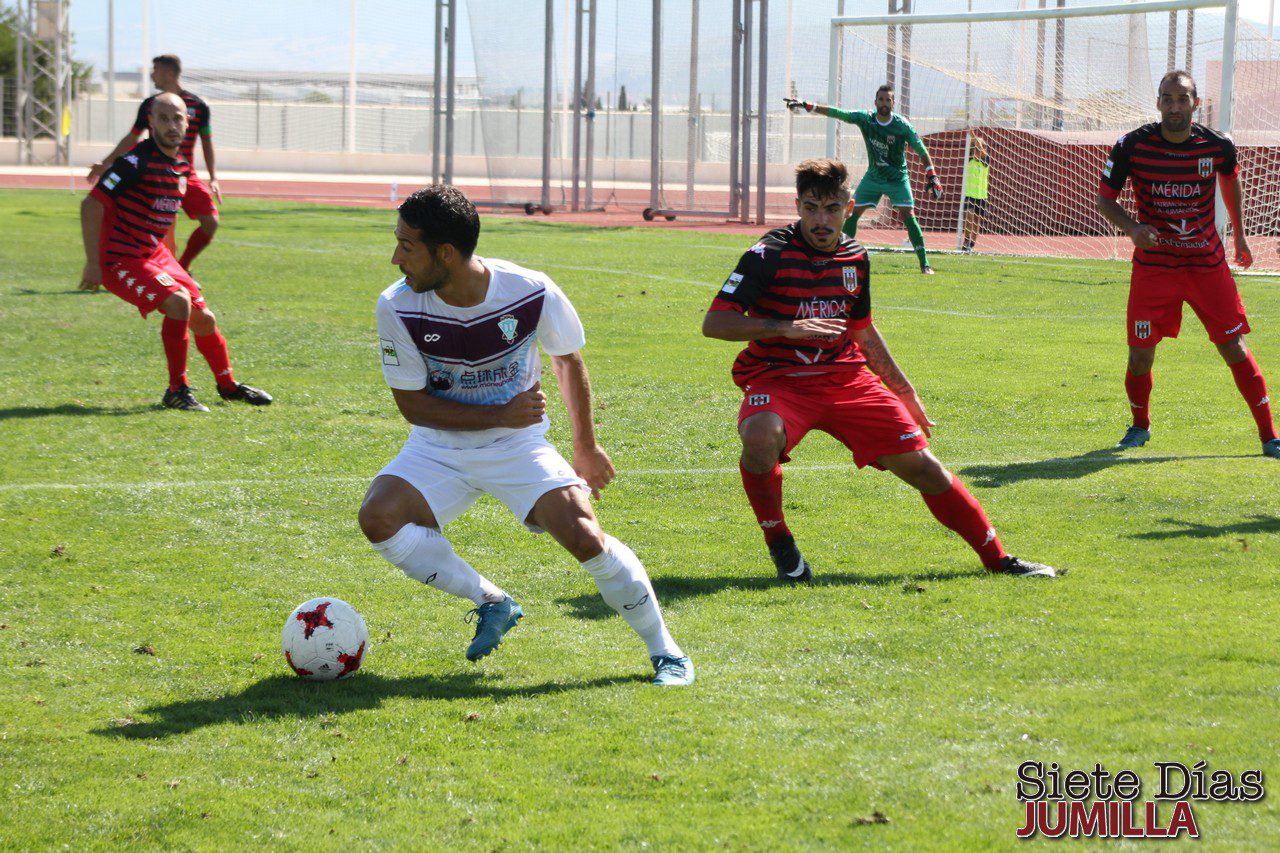 Espoleados por el gol, los emeritenses intentaron buscar el empate, pero no consiguieron ver puerta y con el 1-0 y la ilusión intacta para la grada jumillana el encuentro se fue al descanso.