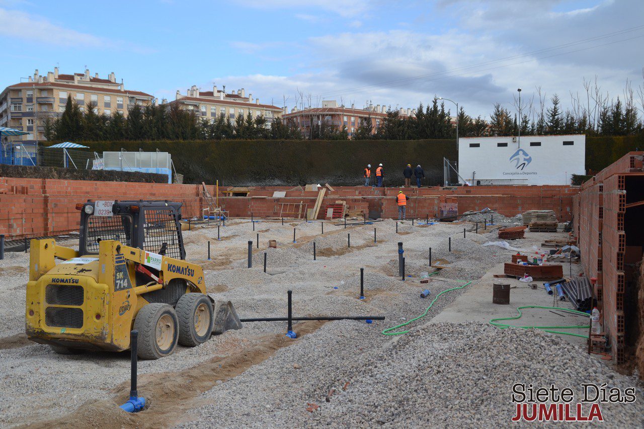 La alcaldesa de Jumilla, Juana Guardiola, el concejal de Obras y Urbanismo, Francisco González, y el concejal de Deportes, Juan Manuel García, han visitado esta mañana las obras de la nueva Piscina Olímpica del Polideportivo Municipal La Hoya. La fecha prevista para la finalización de las mismas se ha establecido en torno a mayo, algo más de dos meses después de la previsión inicial que de final de febrero.