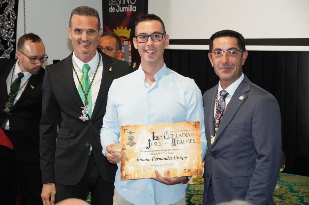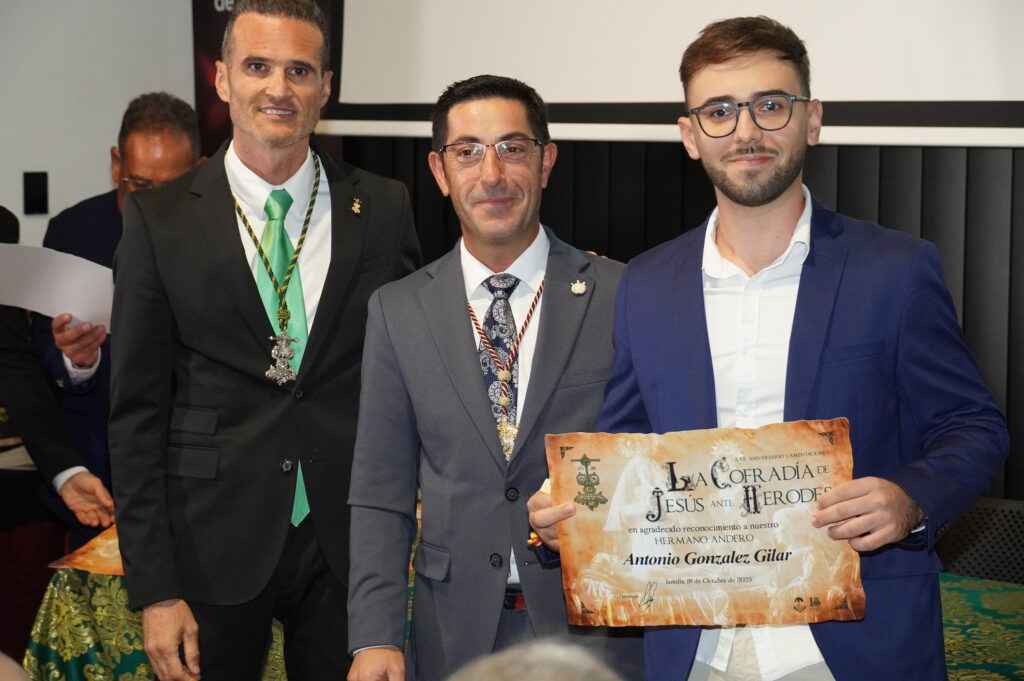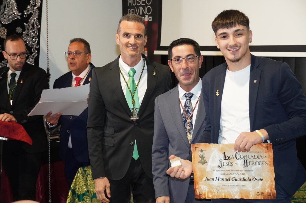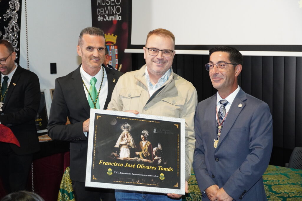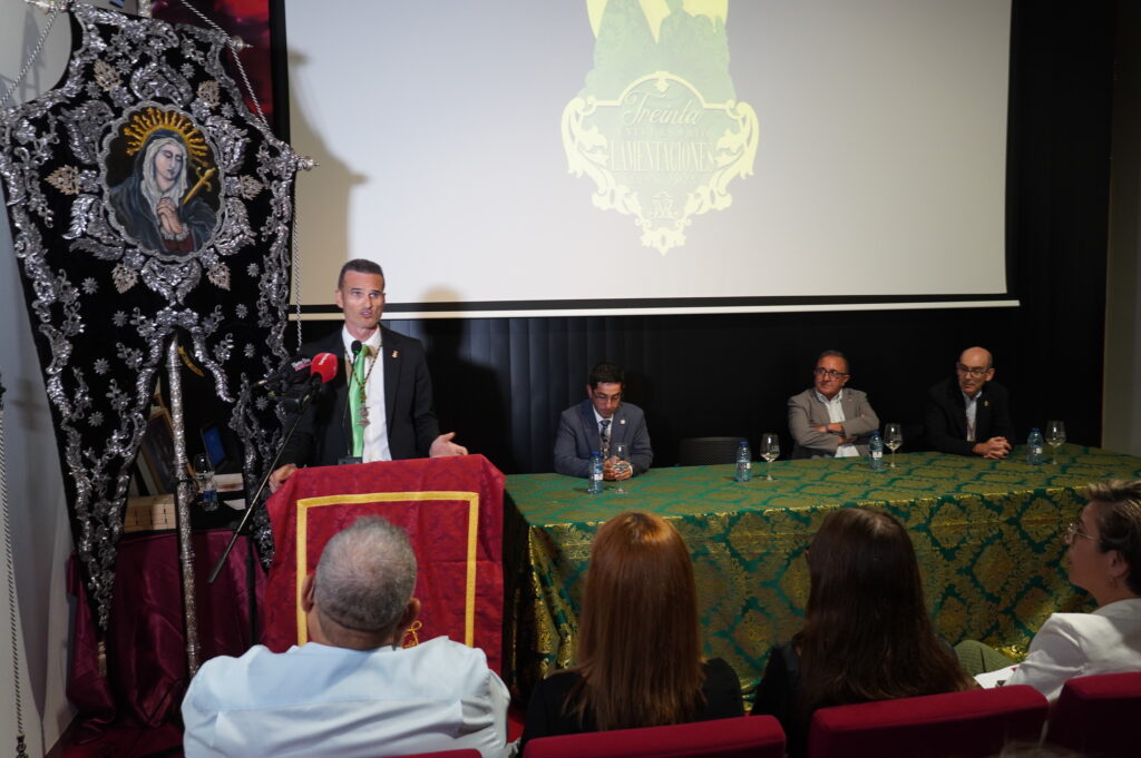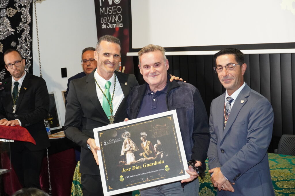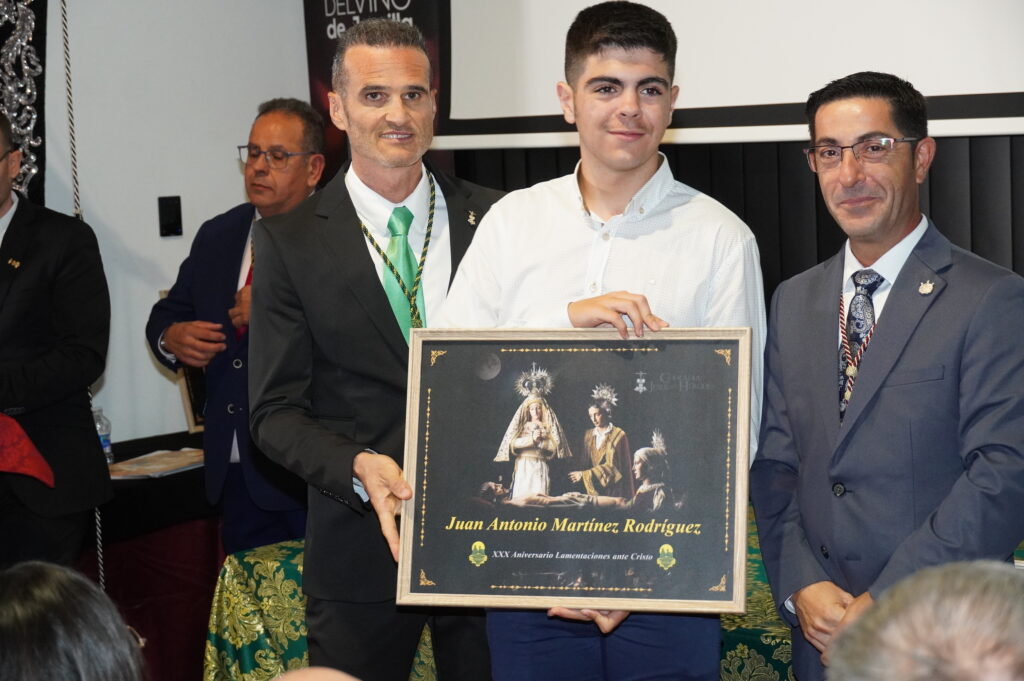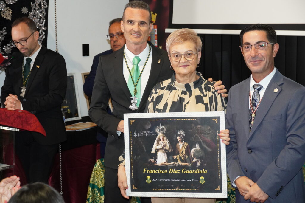 “Celebramos 30 años de historia, fe y devoción en torno a una de nuestras más sentidas manifestaciones: el paso de Las Lamentaciones ante Cristo Muerto. Treinta Semanas Santas en las que nuestro paso ha recorrido las calles, envuelto en un silencio que habla más que mil palabras, acompañado por la oración, el respeto y el sentimiento de cada uno de los que lo habéis acompañado”. Con estas palabras inició su intervención el presidente de la Cofradía Jesús Ante Herodes, Francisco Díaz, en el homenaje a los anderos de Las Lamentaciones.