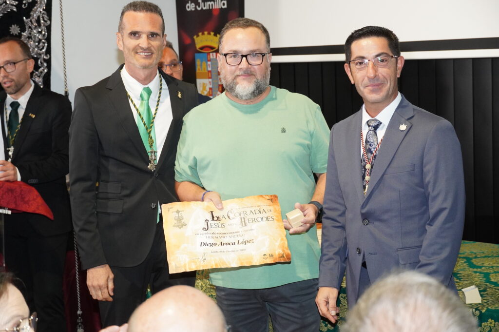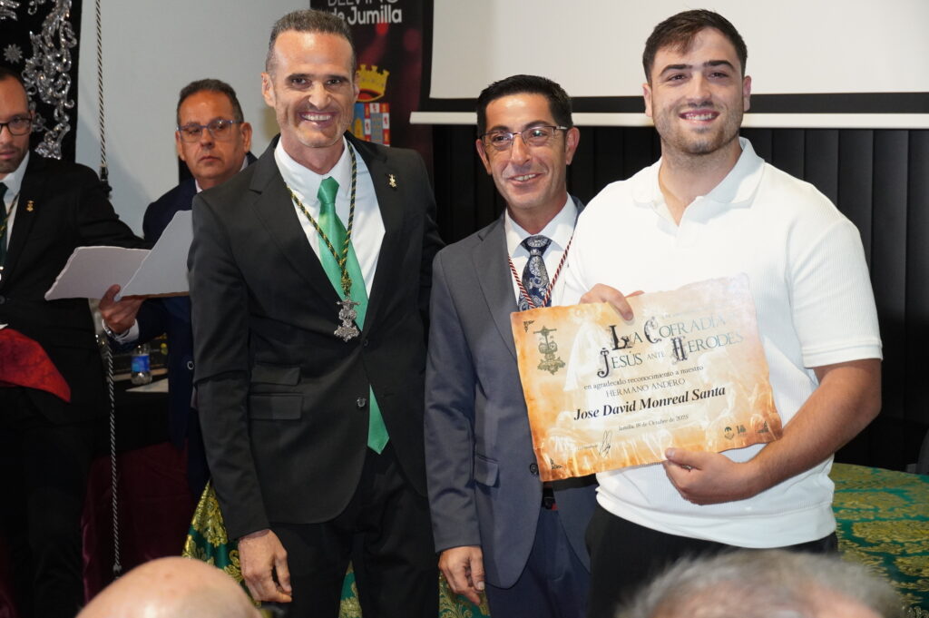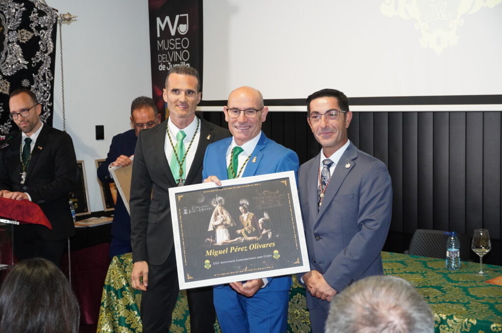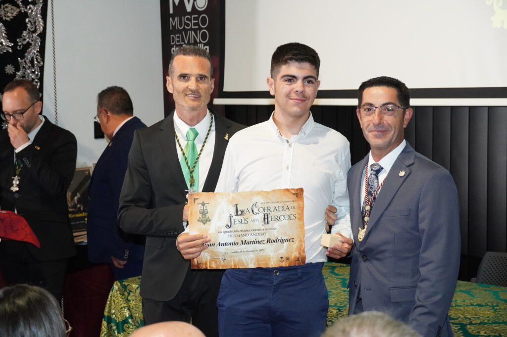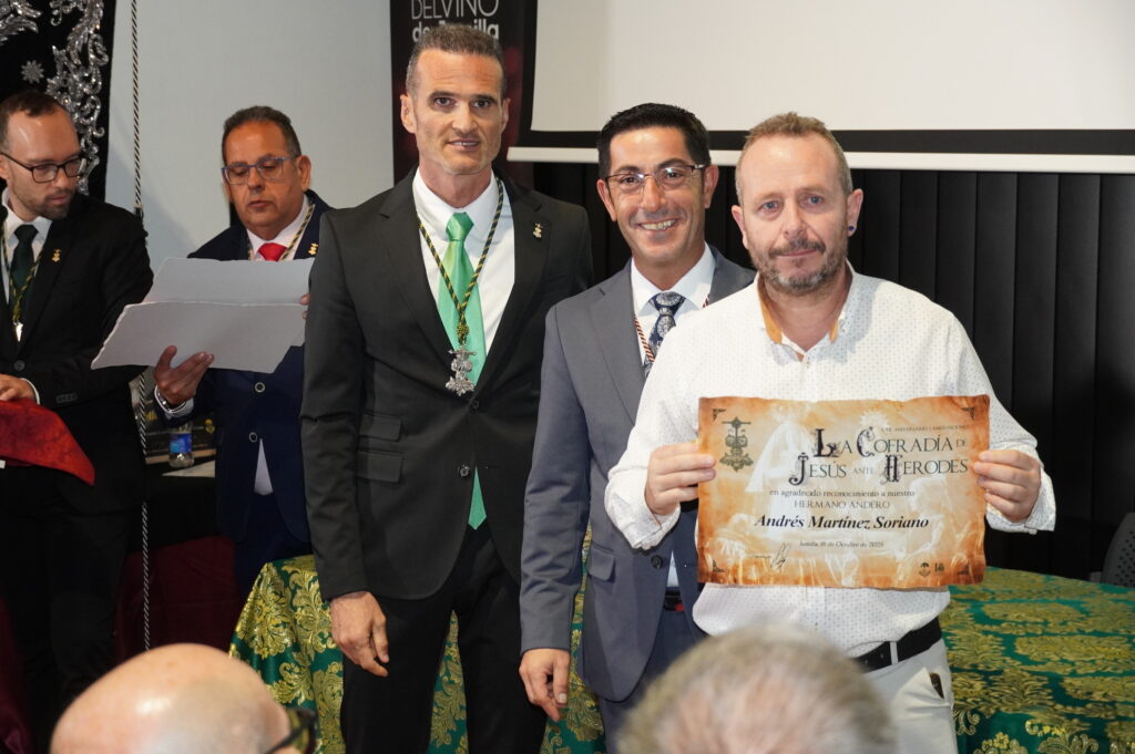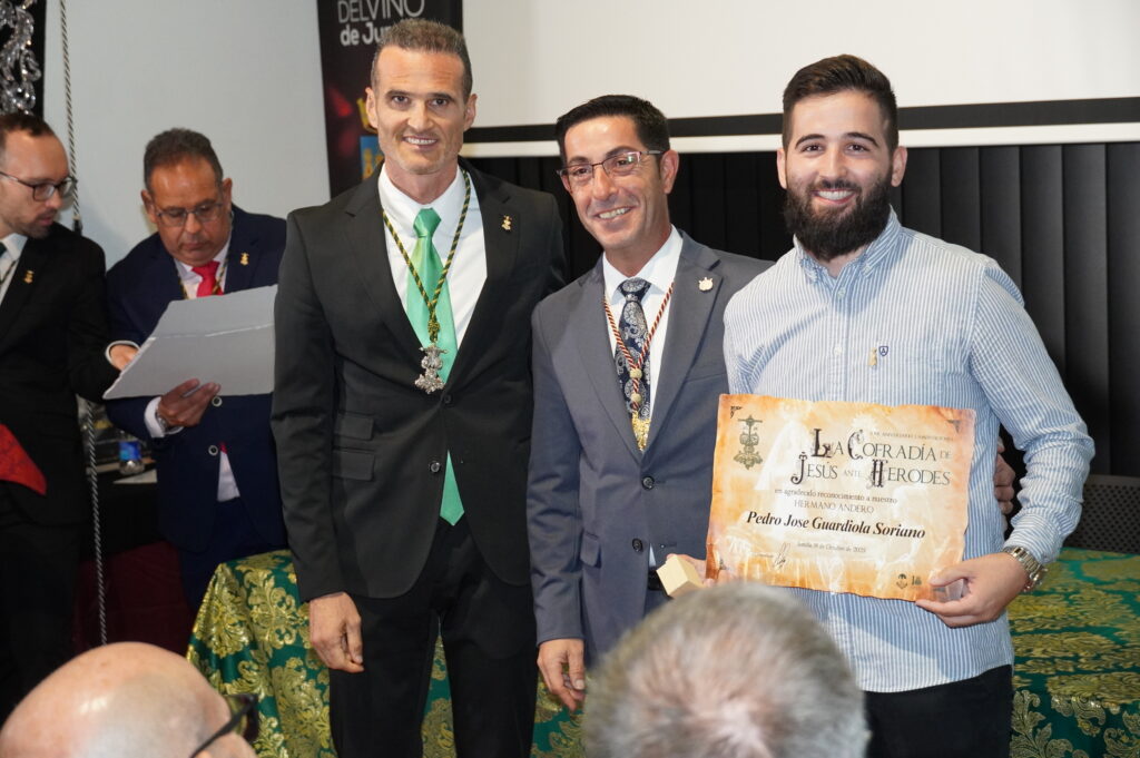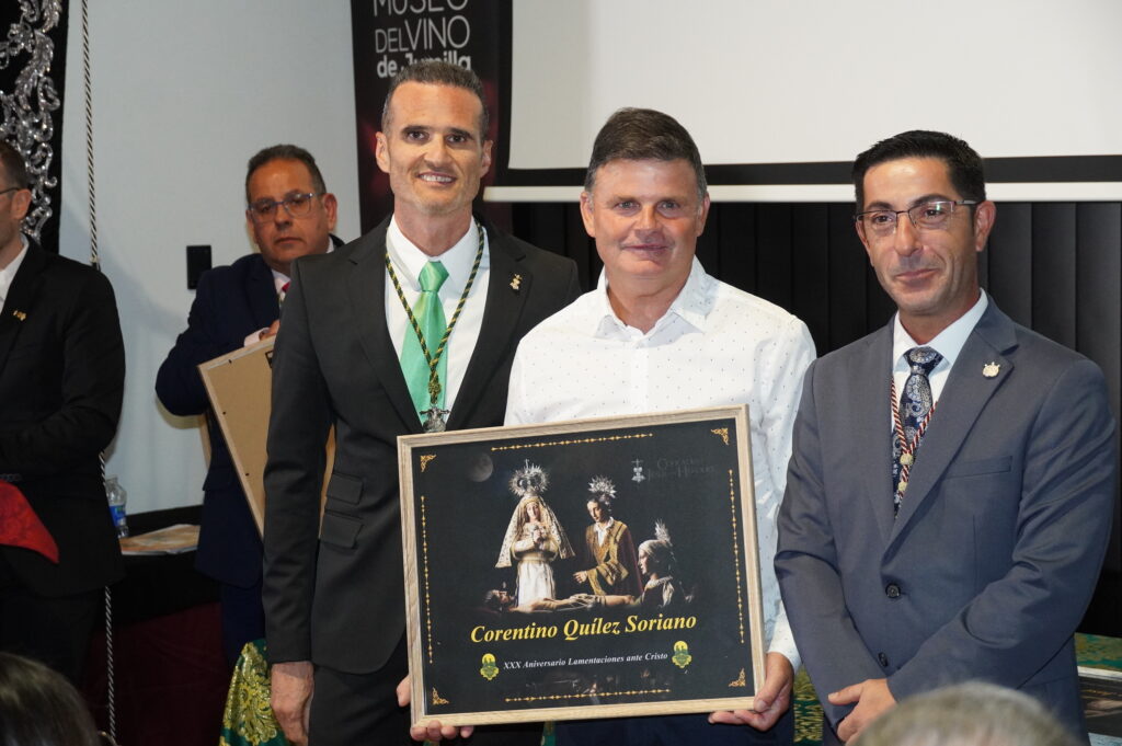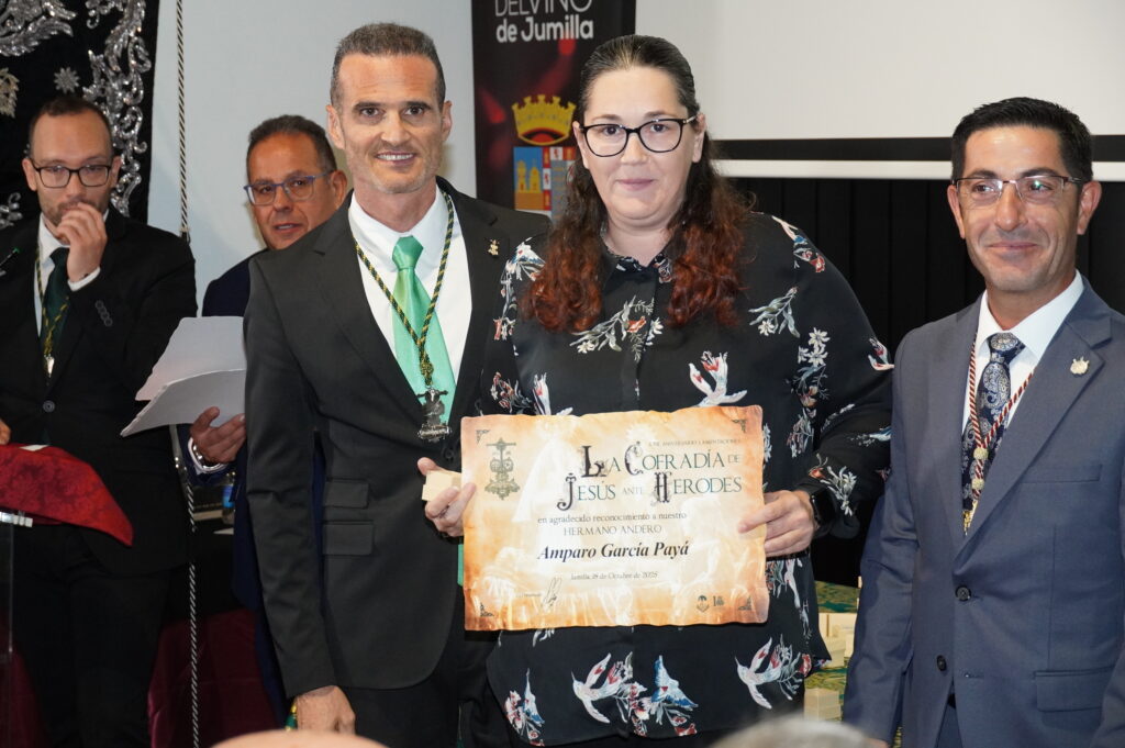 “Celebramos 30 años de historia, fe y devoción en torno a una de nuestras más sentidas manifestaciones: el paso de Las Lamentaciones ante Cristo Muerto. Treinta Semanas Santas en las que nuestro paso ha recorrido las calles, envuelto en un silencio que habla más que mil palabras, acompañado por la oración, el respeto y el sentimiento de cada uno de los que lo habéis acompañado”. Con estas palabras inició su intervención el presidente de la Cofradía Jesús Ante Herodes, Francisco Díaz, en el homenaje a los anderos de Las Lamentaciones.