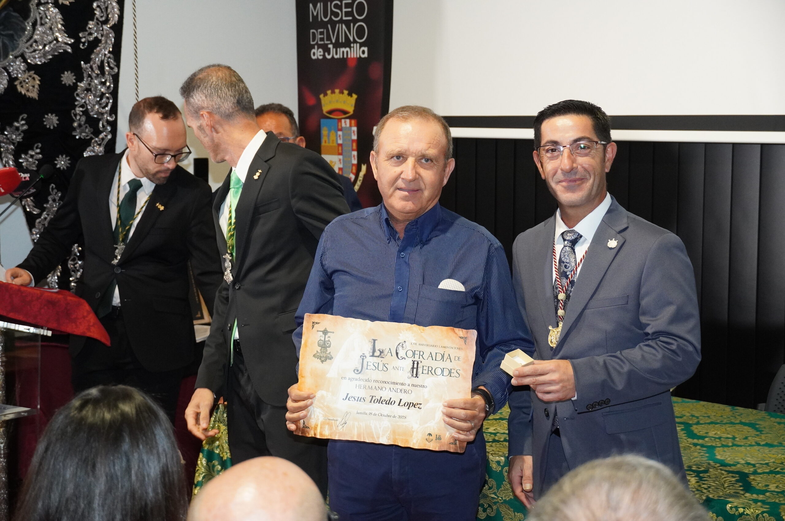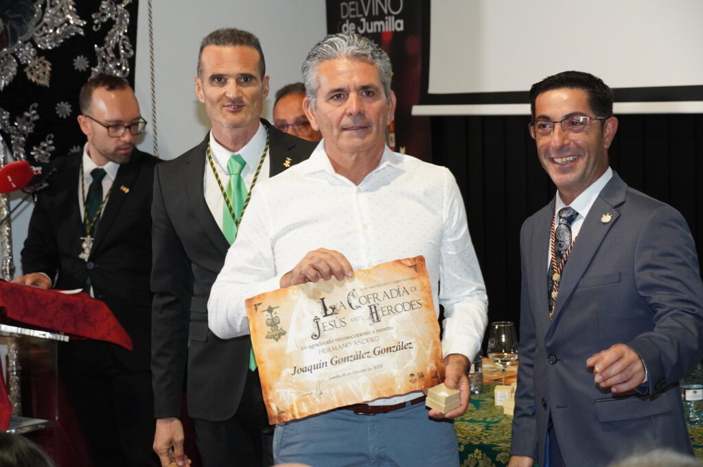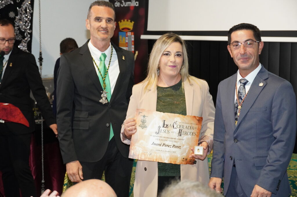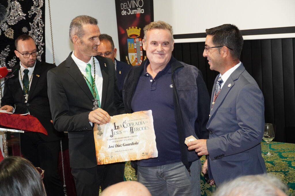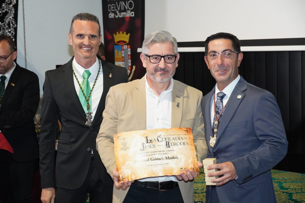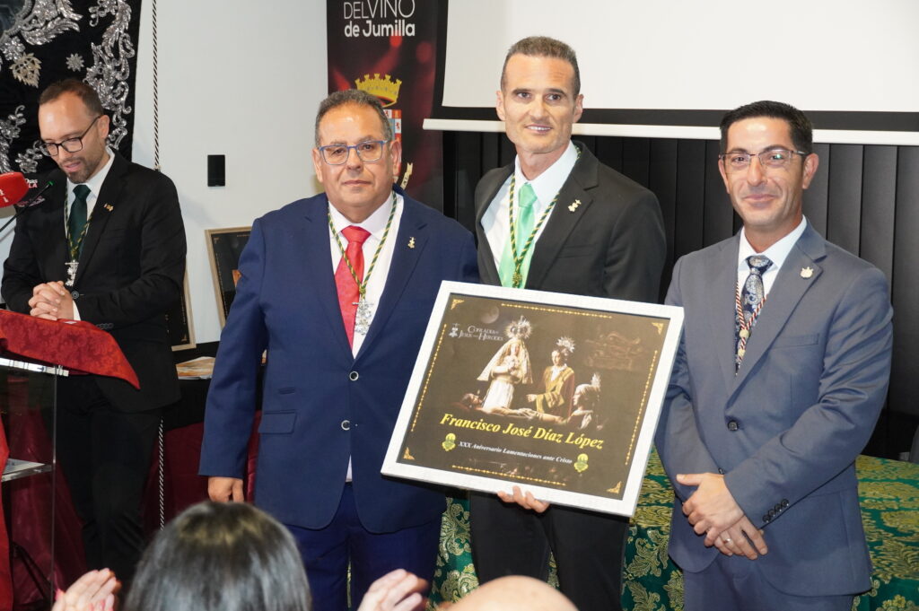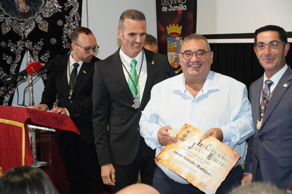 “Celebramos 30 años de historia, fe y devoción en torno a una de nuestras más sentidas manifestaciones: el paso de Las Lamentaciones ante Cristo Muerto. Treinta Semanas Santas en las que nuestro paso ha recorrido las calles, envuelto en un silencio que habla más que mil palabras, acompañado por la oración, el respeto y el sentimiento de cada uno de los que lo habéis acompañado”. Con estas palabras inició su intervención el presidente de la Cofradía Jesús Ante Herodes, Francisco Díaz, en el homenaje a los anderos de Las Lamentaciones.
