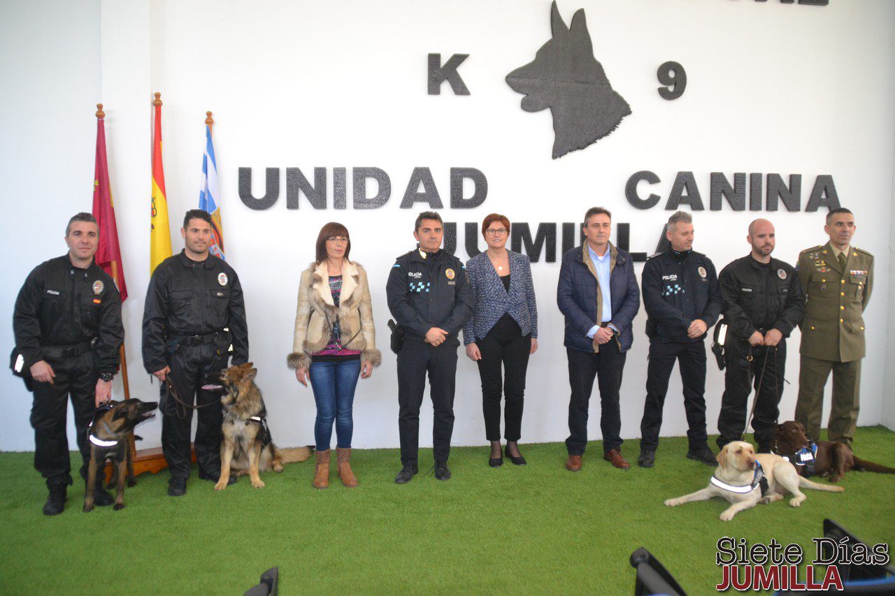 Las instalaciones de la Jefatura de Policía acogieron la presentación de la Unidad Canina de la Policía Local. Se trata de un equipo dirigido por el cabo de Seguridad Ciudadana, José David Martínez, con la supervisión del oficial jefe, Antonio Luis Mula y está formado por tres perras, Freya (pastor checo), Roma (pastor belga) y Atila (labrador) y tres agentes de la Policía, Alejandro Barrón, Juan José Delgado y Juan Antonio Fernández, que han realizado varios cursos de formación para hacerse cargo de los animales.